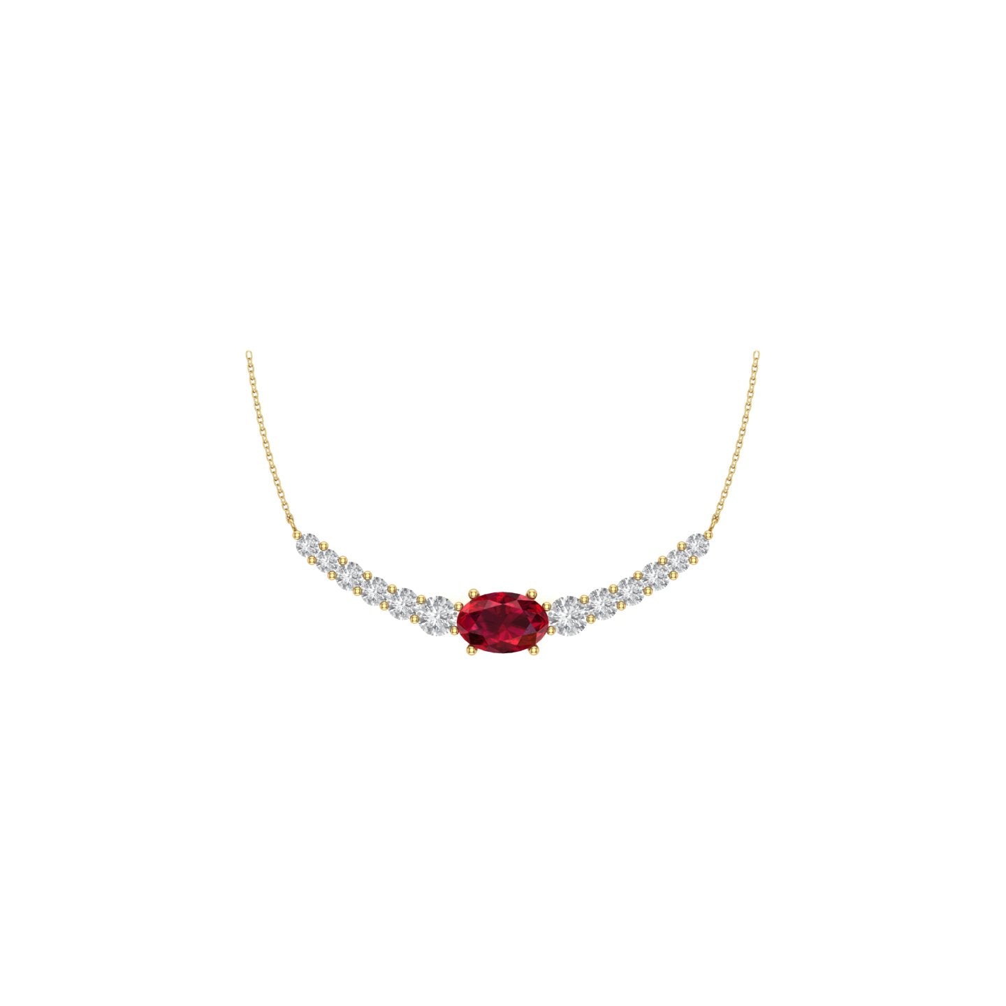 Solid Gold Diamond and Ruby Curved Bar Necklace