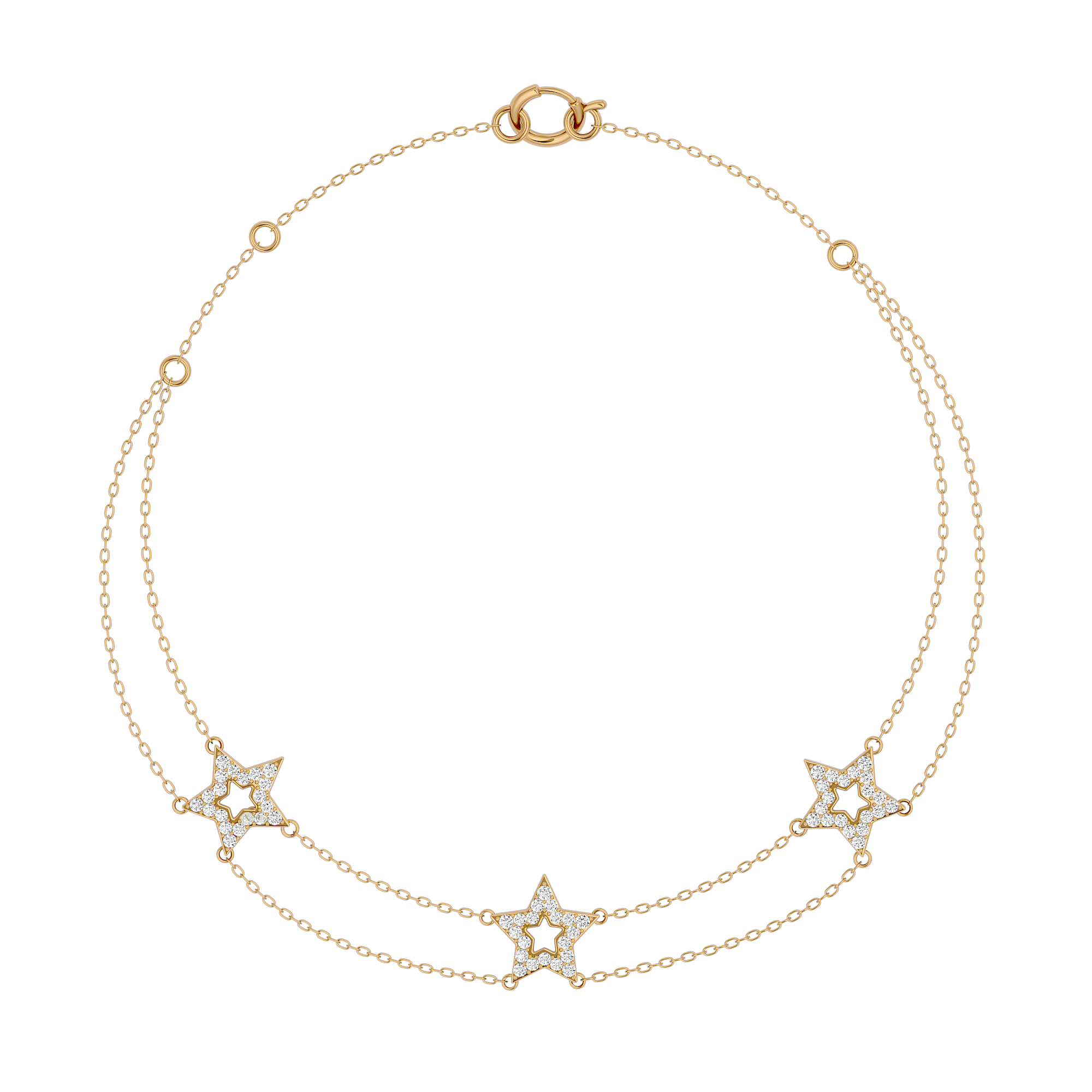 Solid Gold Diamond 3 Star Bracelet