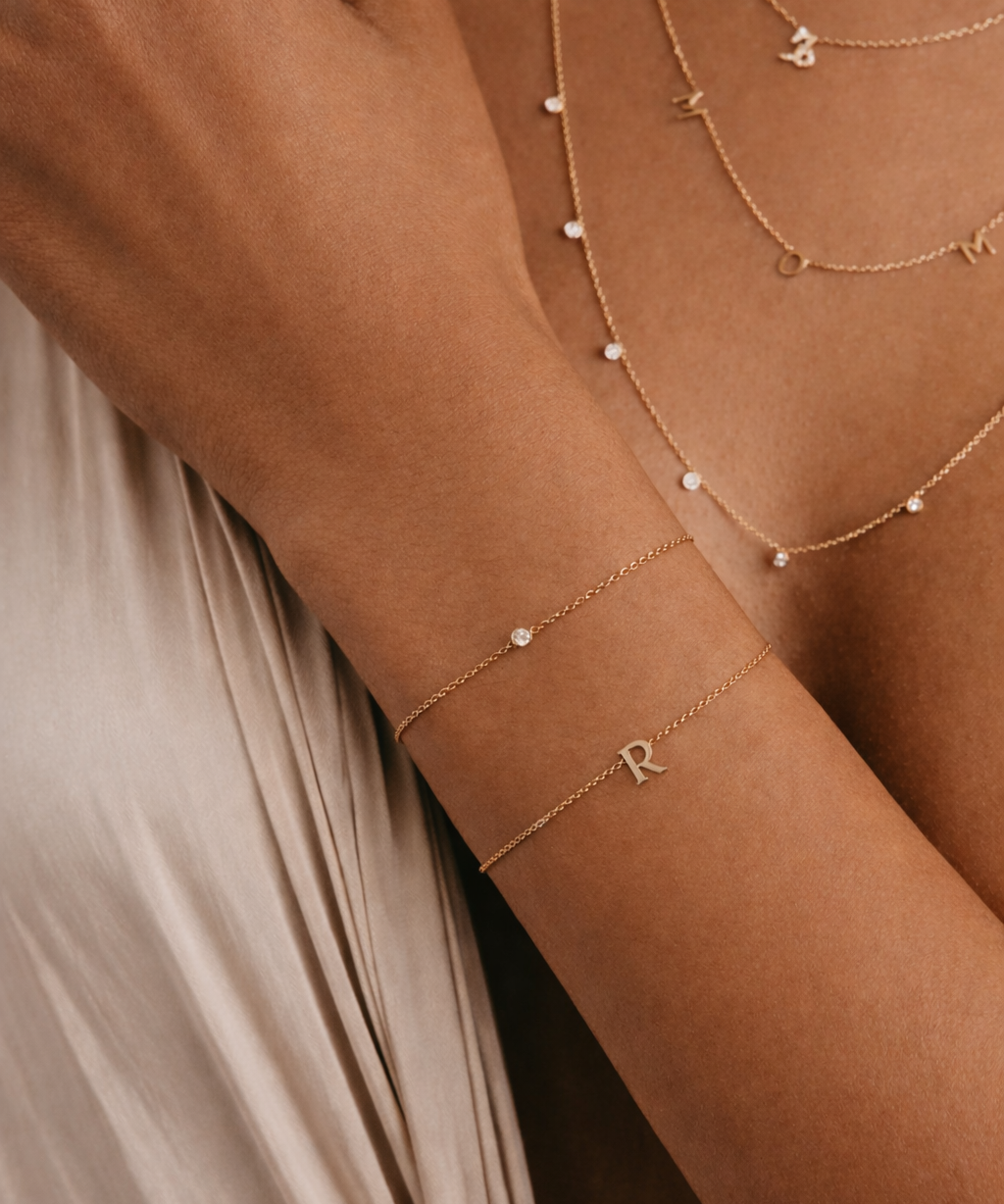 Solid Gold Diamond Initial Bracelet