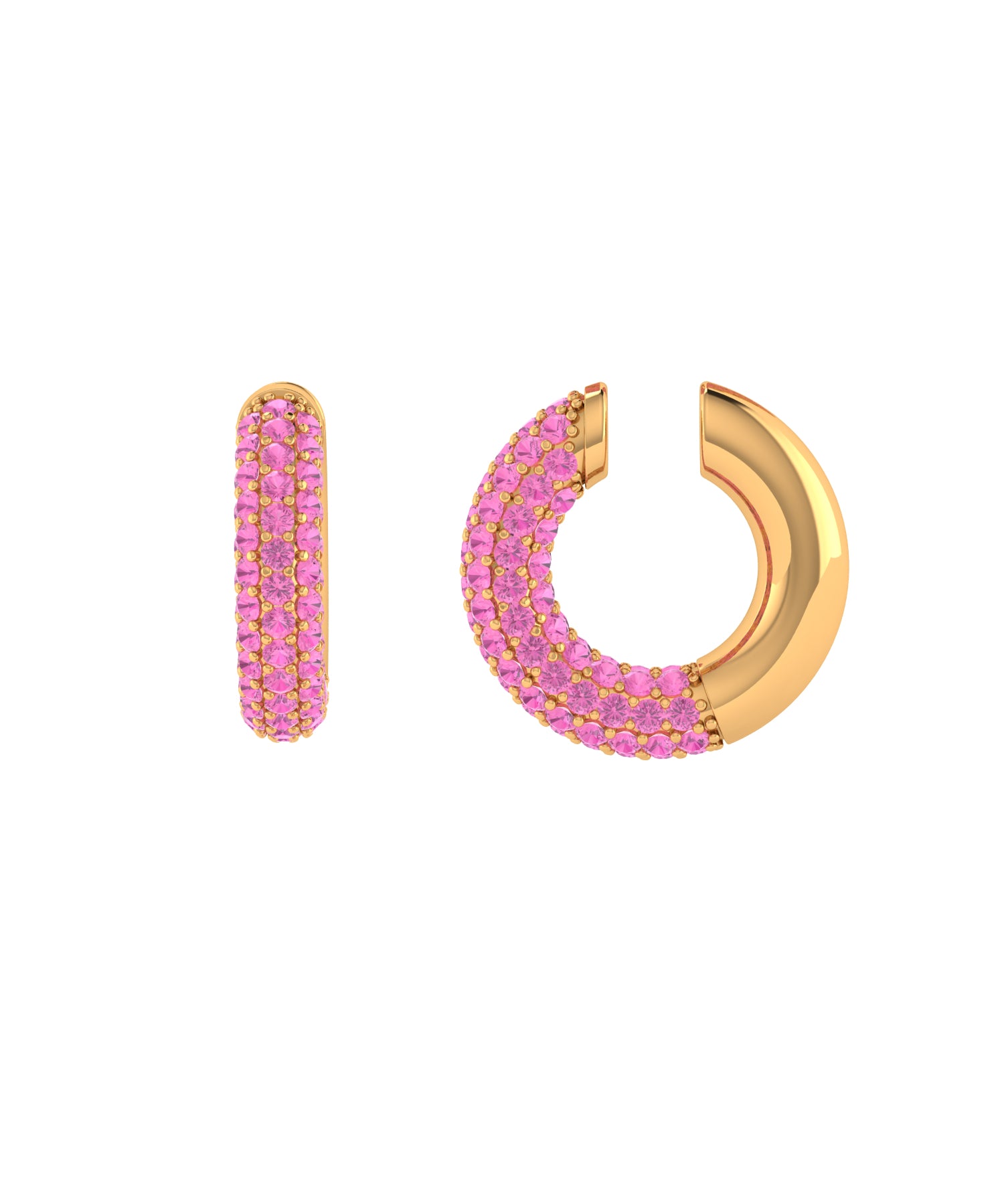 Solid Gold Pave Pink Sapphire Ear Cuff - Single