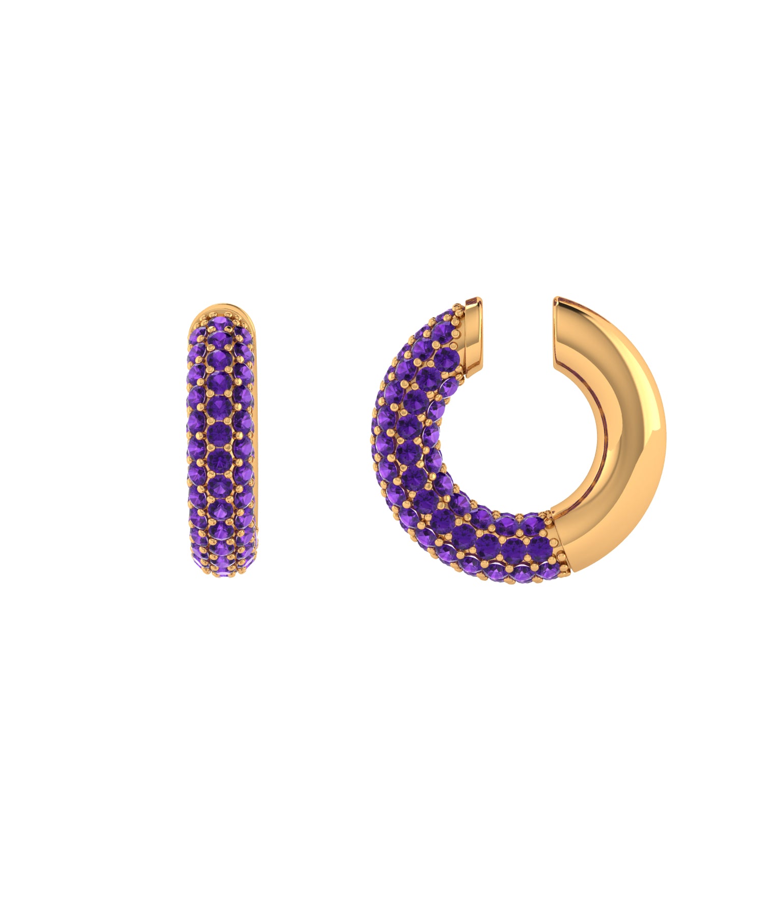 Solid Gold Pave Amethyst Ear Cuff - Single