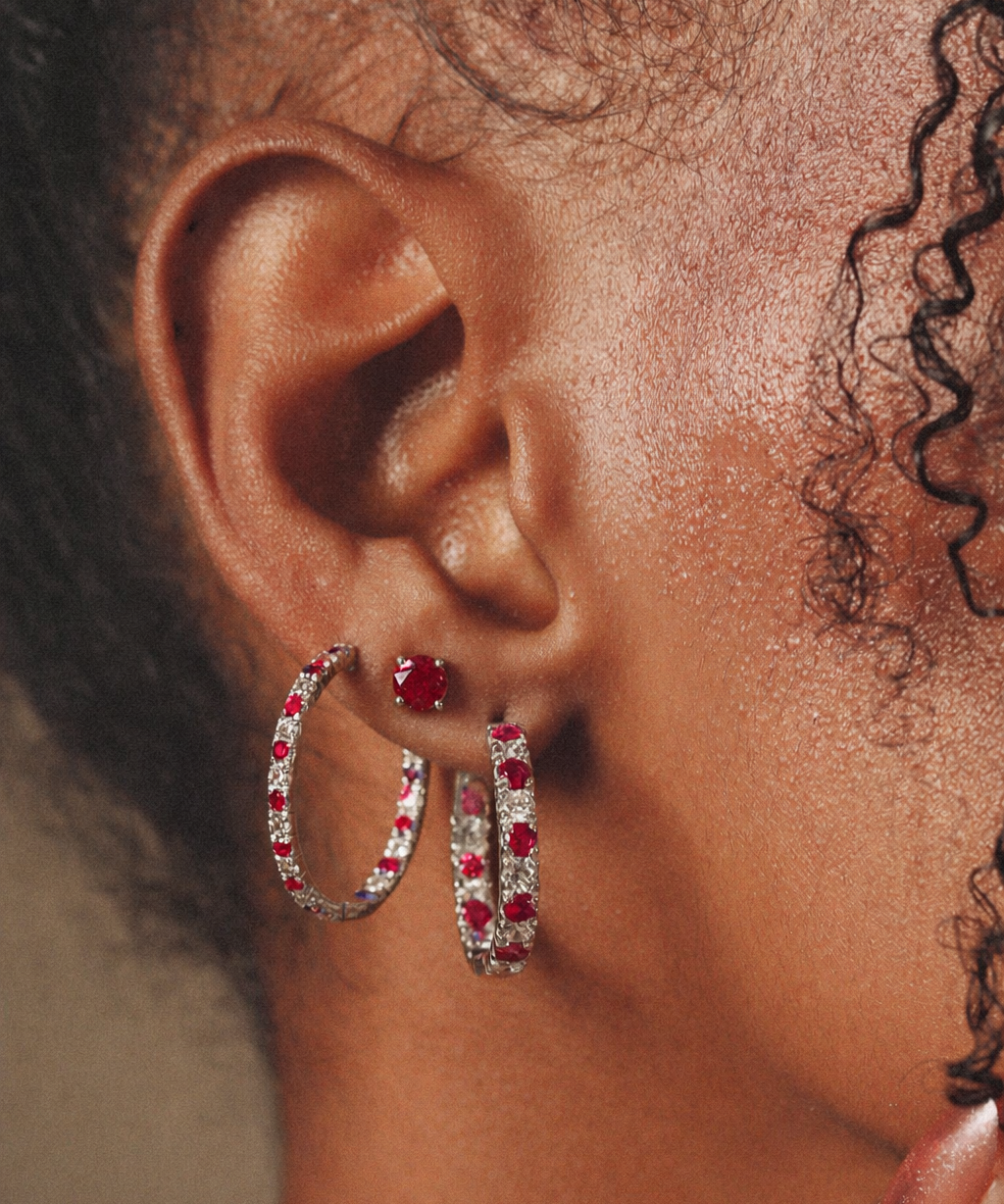 Solid Gold Ruby Diamond Hoop Earrings