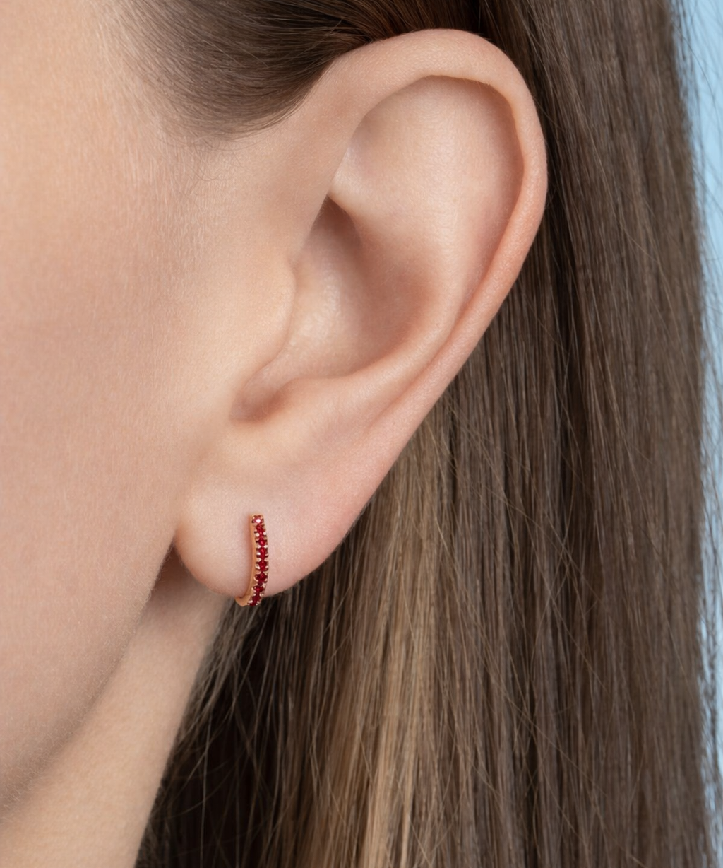 Solid Gold Ruby Huggie Earrings