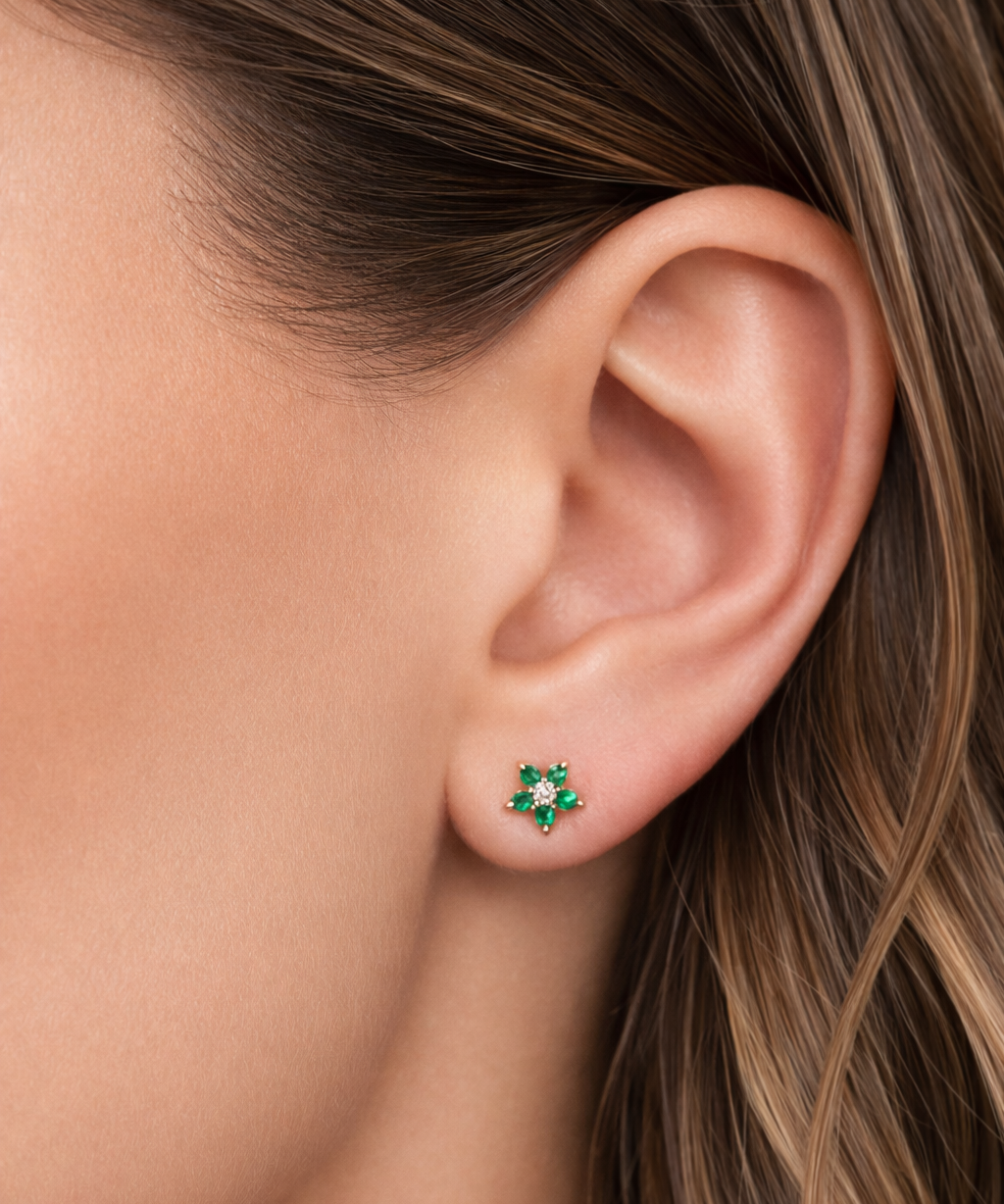 Solid Gold Emerald Floral Studs
