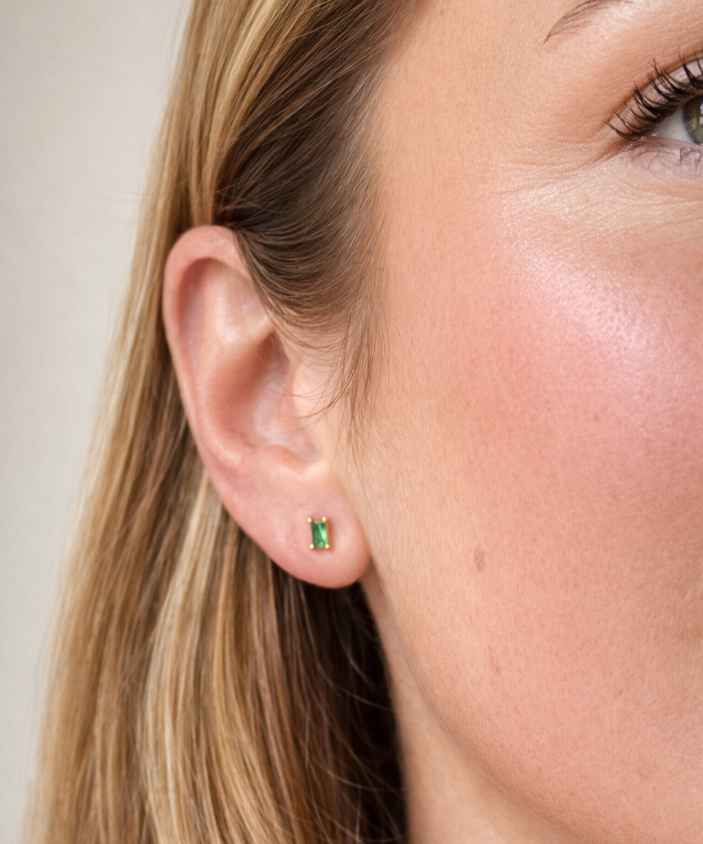 Solid Gold Emerald Baguette Studs