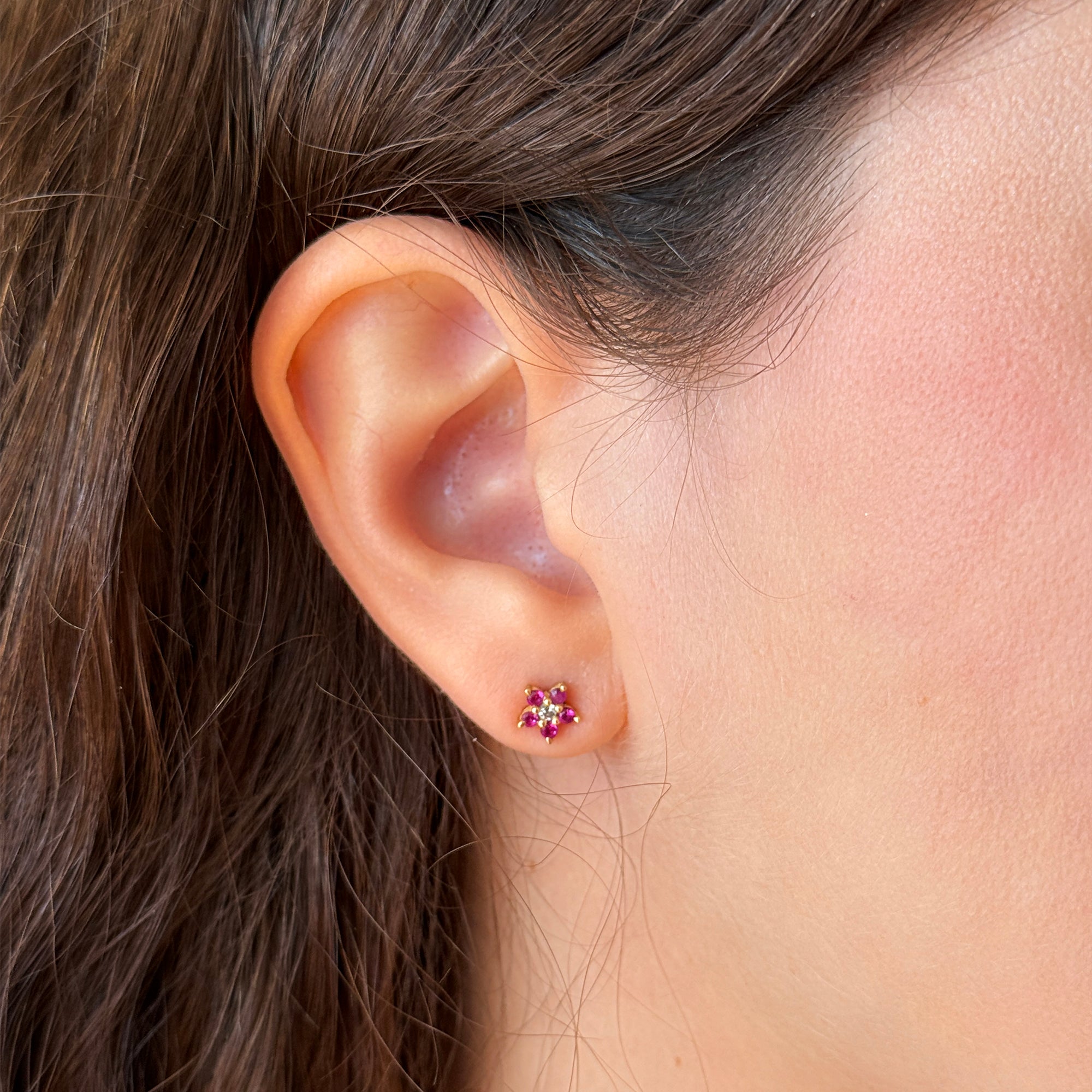 Solid Gold Ruby Floral Studs