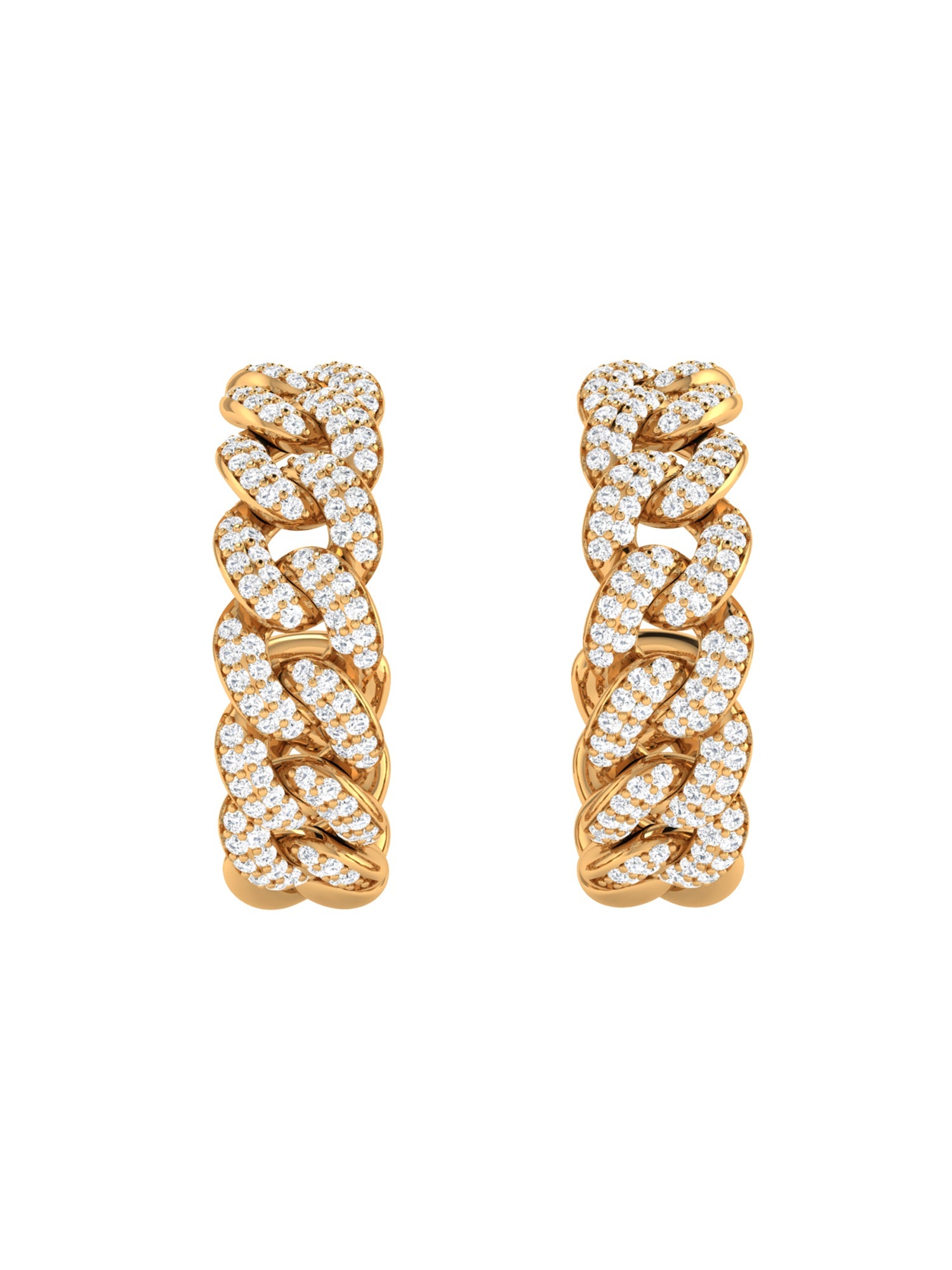 Solid Gold Diamond Curb Chain Hoop Earrings