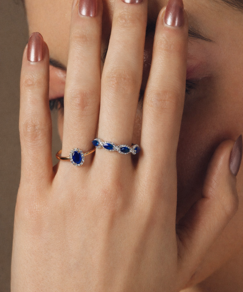 Solid Gold Ruby Diamond Oval Stacking Ring