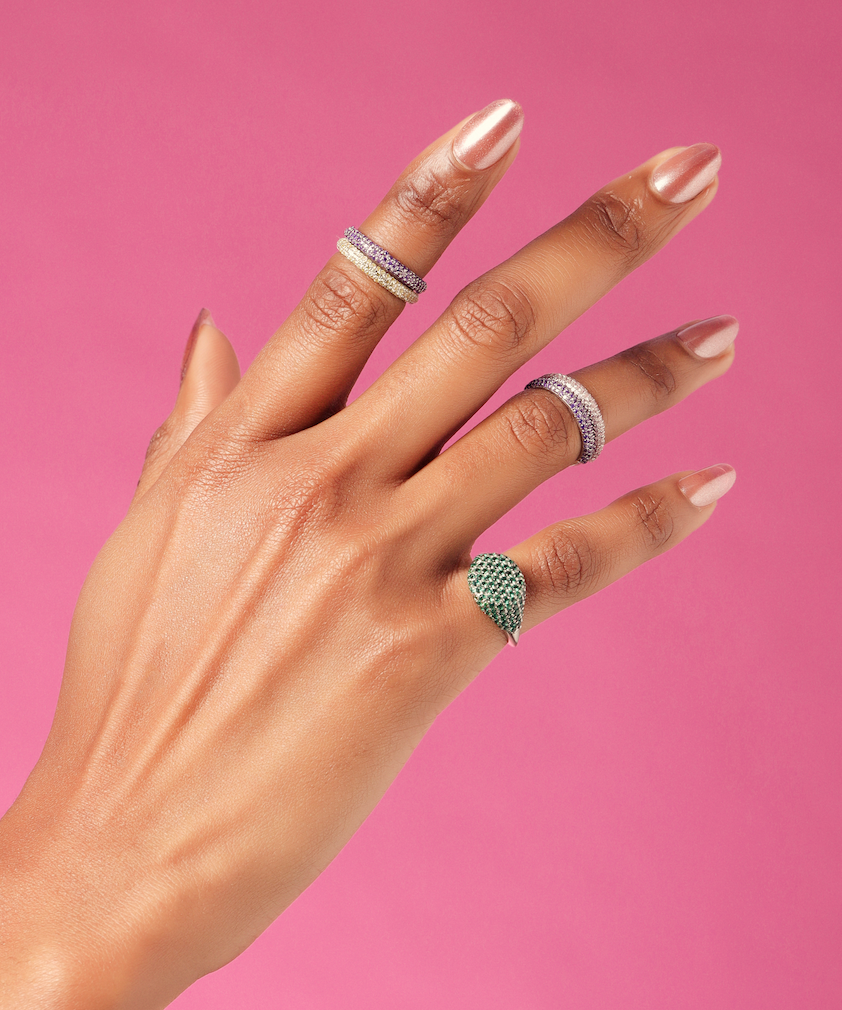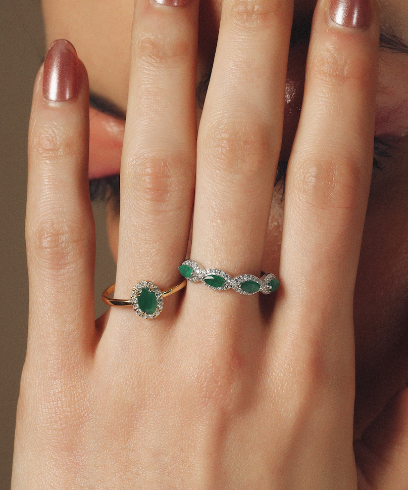 Solid Gold Half Eternity Emerald And Diamond Ring