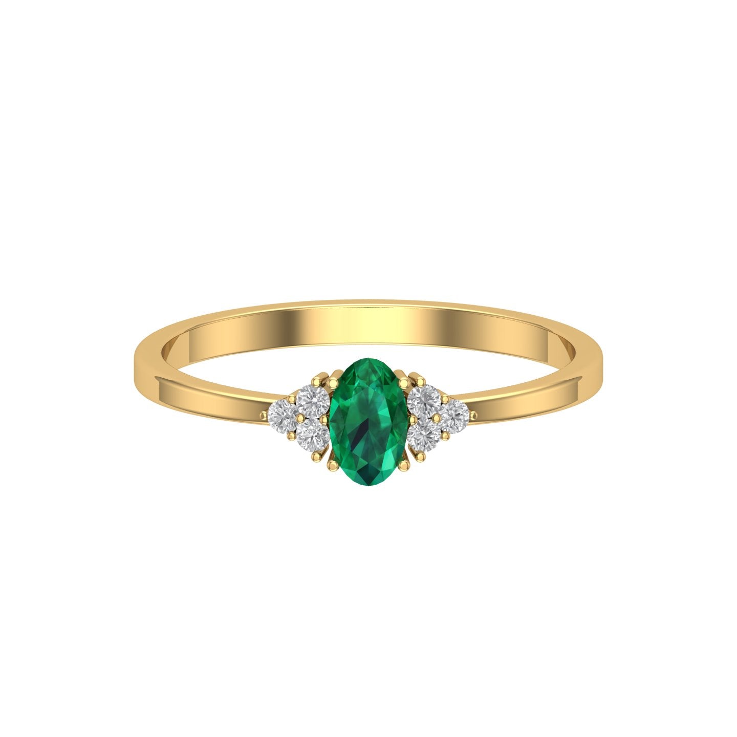 Solid Gold Emerald Solitaire Diamond Ring