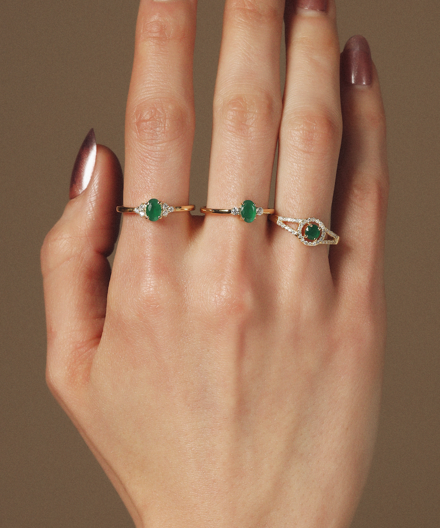 Solid Gold Emerald Diamond Oval Stacking Ring