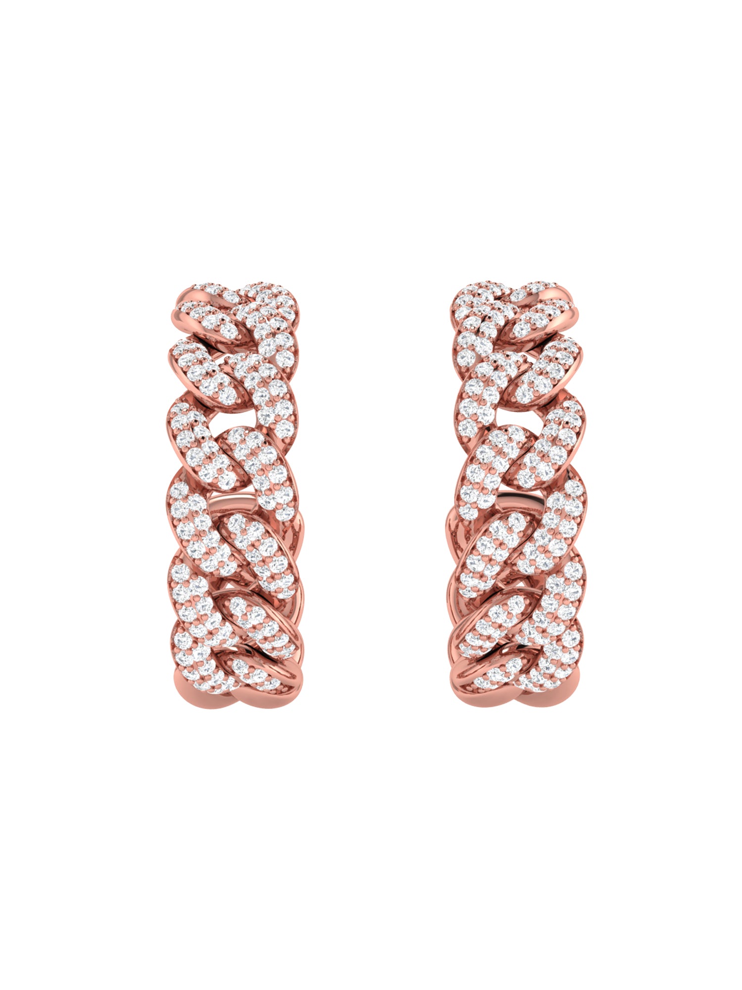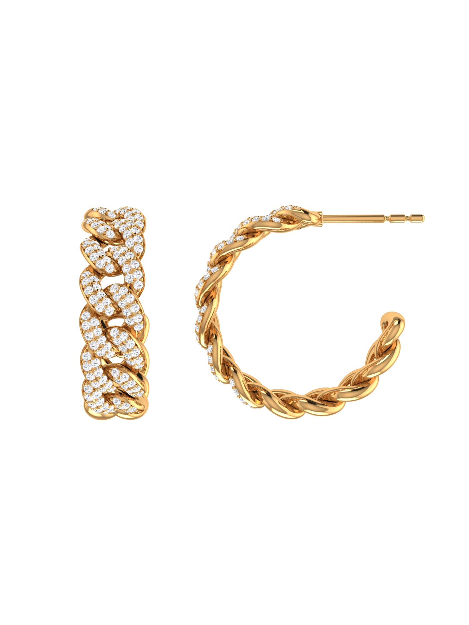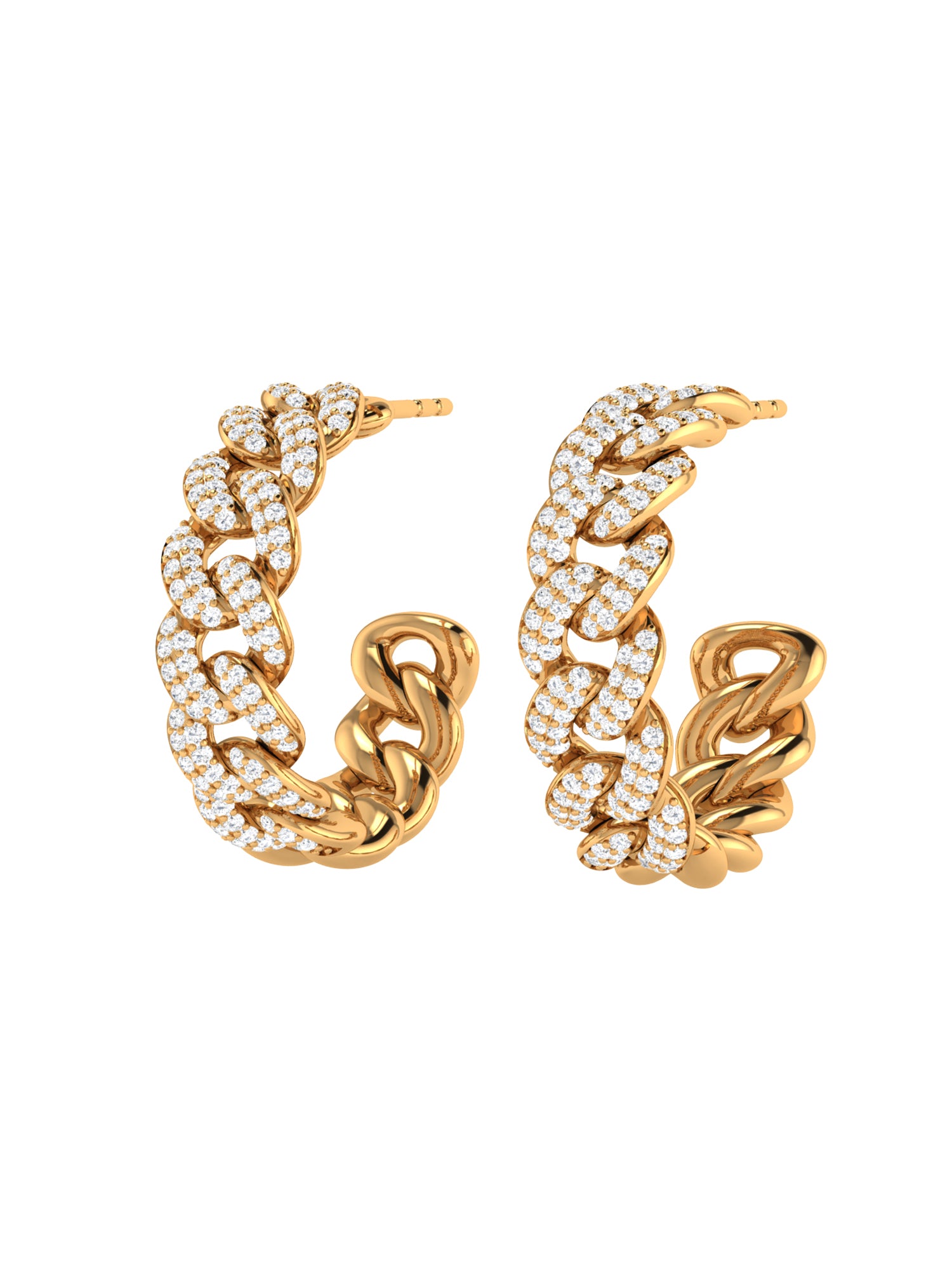 Solid Gold Diamond Curb Chain Hoop Earrings