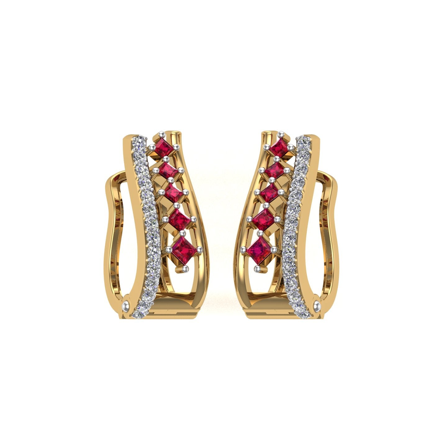 Solid Gold Ruby Diamond Vintage Hoop Earrings