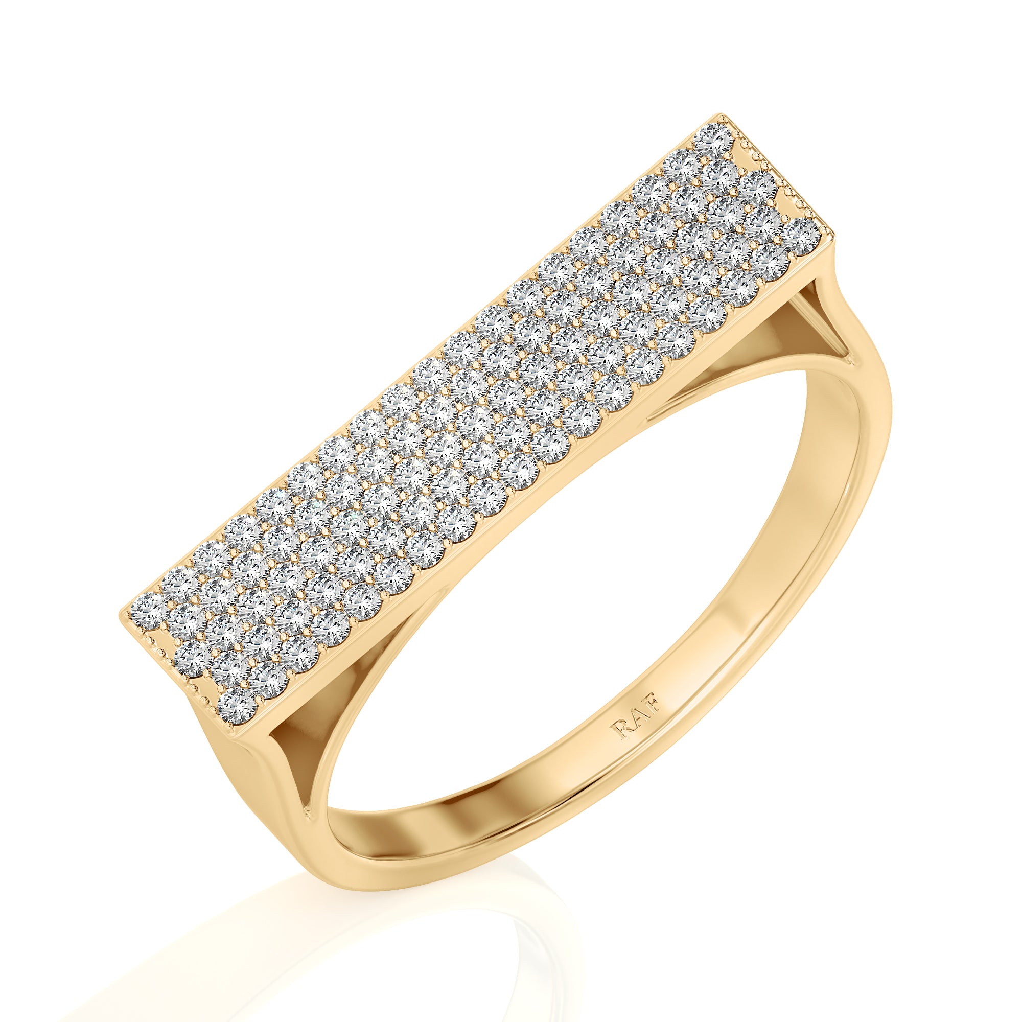 Solid Gold Pave Diamond Signet Bar Ring
