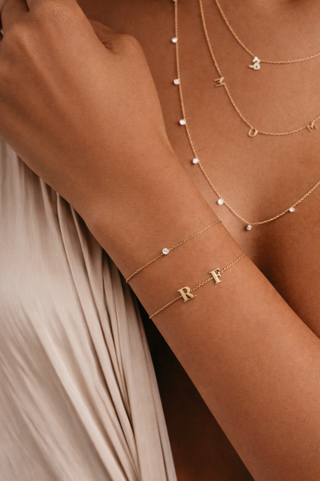 Solid Gold 2 Initials Bracelet