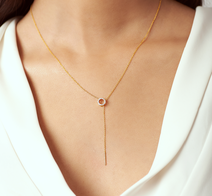 Solid Gold Diamond Halo Lariat