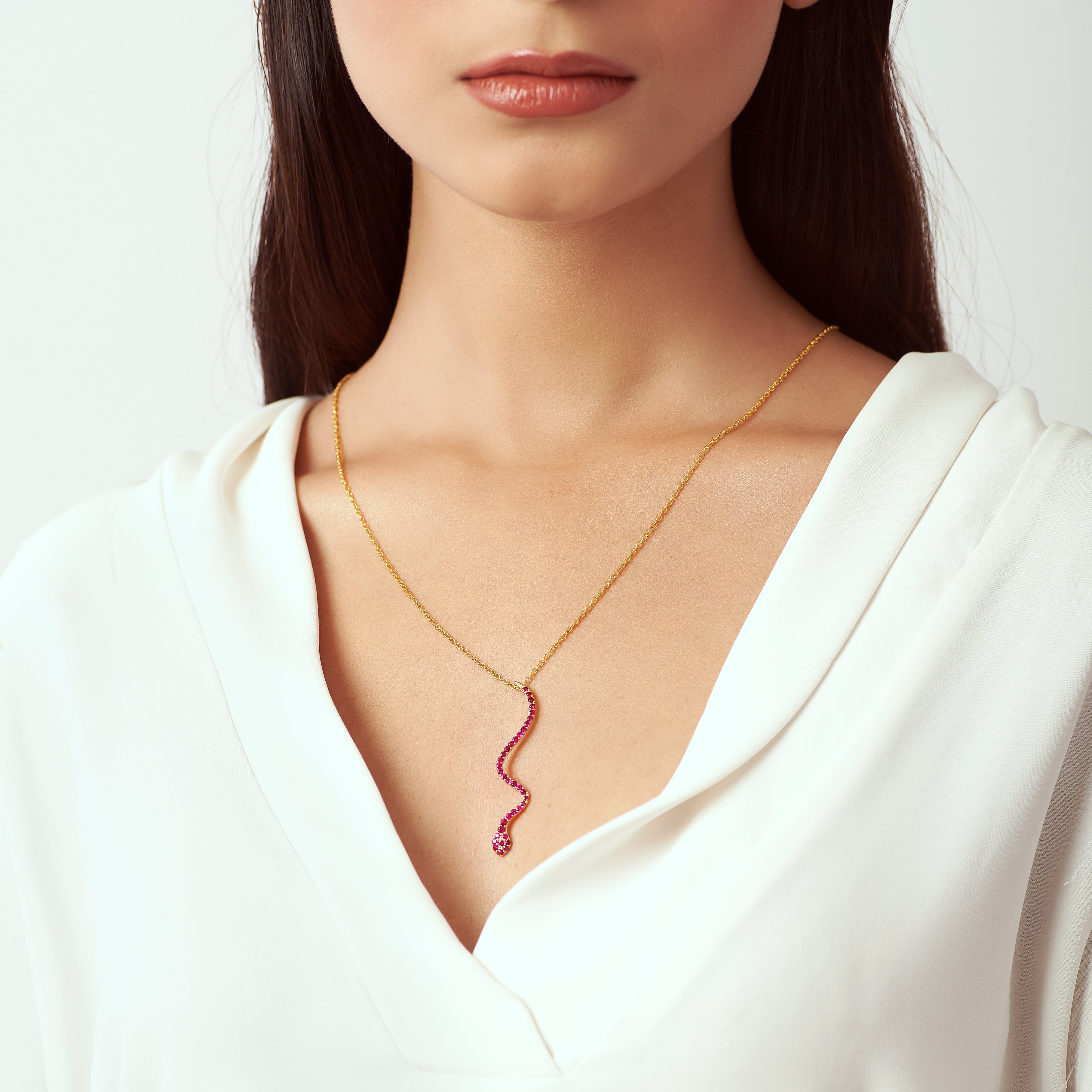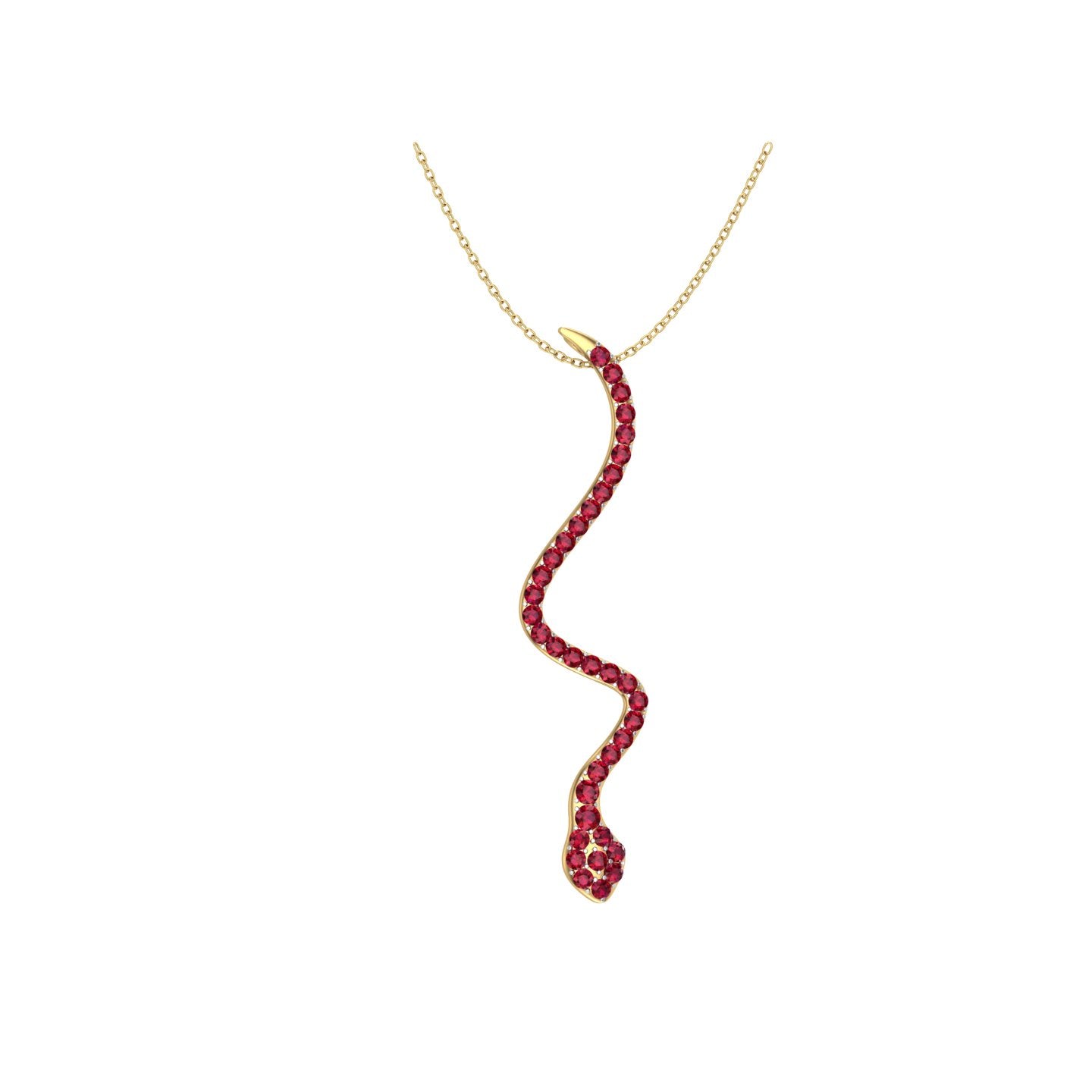 Solid Gold Pave Ruby Snake Necklace