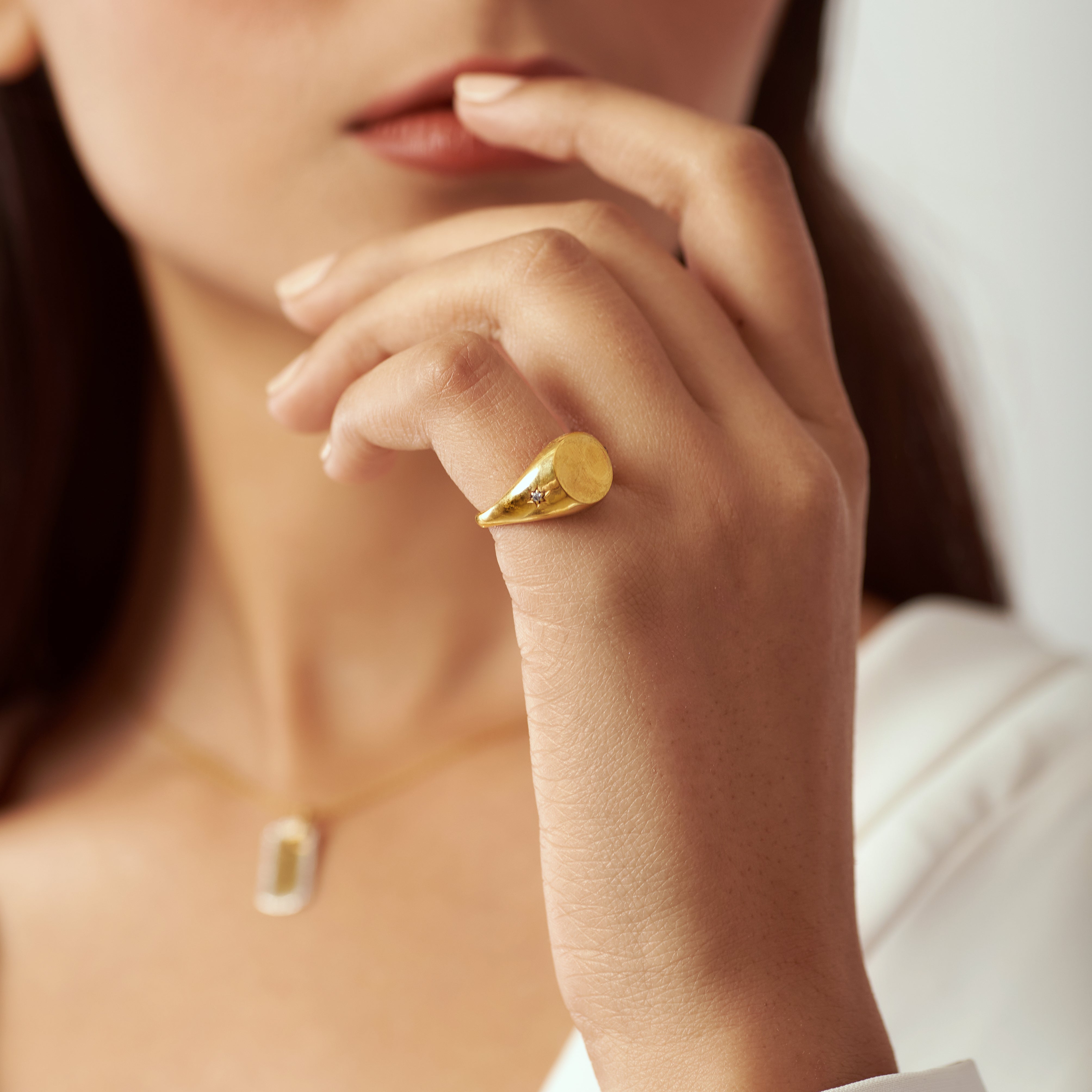 Solid Gold Star Diamond Signet Ring