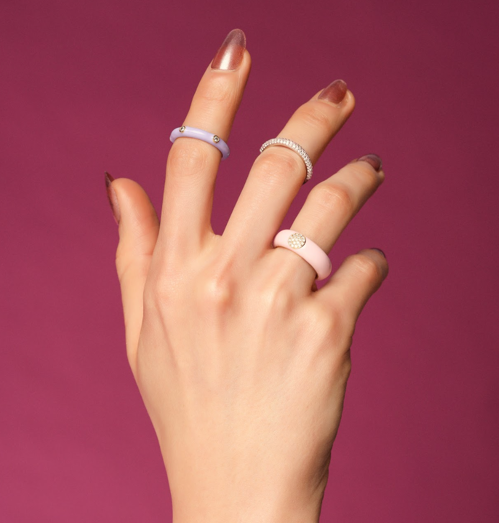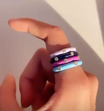 Solid Gold Black Enamel Diamond Ring