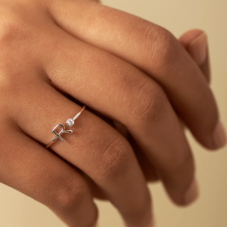 Solid Gold Initial Diamond Ring