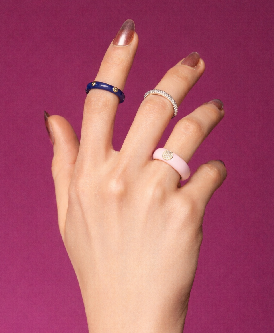 Solid Gold Navy Blue Enamel Diamond Ring