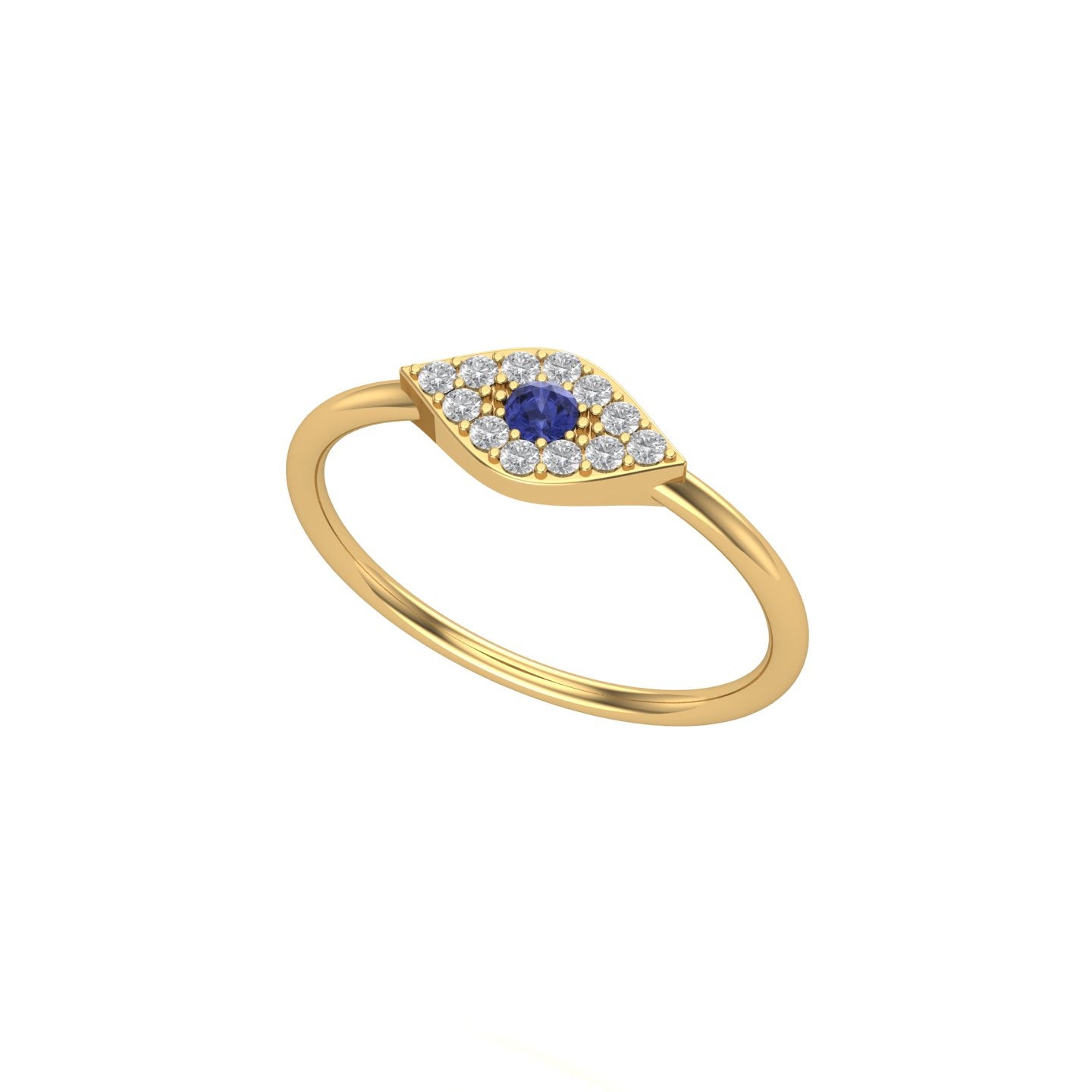 Solid Gold Sapphire Diamond Evil Eye Ring