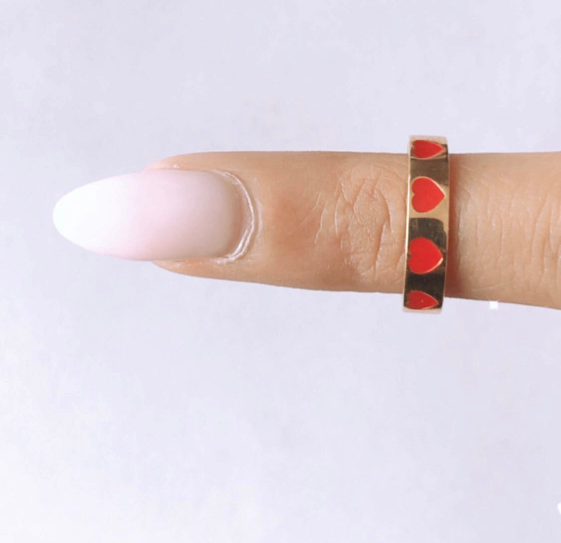 Solid Gold Heart Enamel Wedding Band