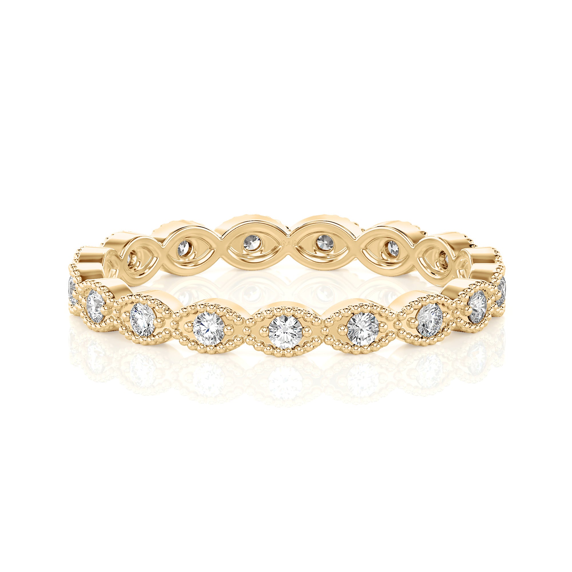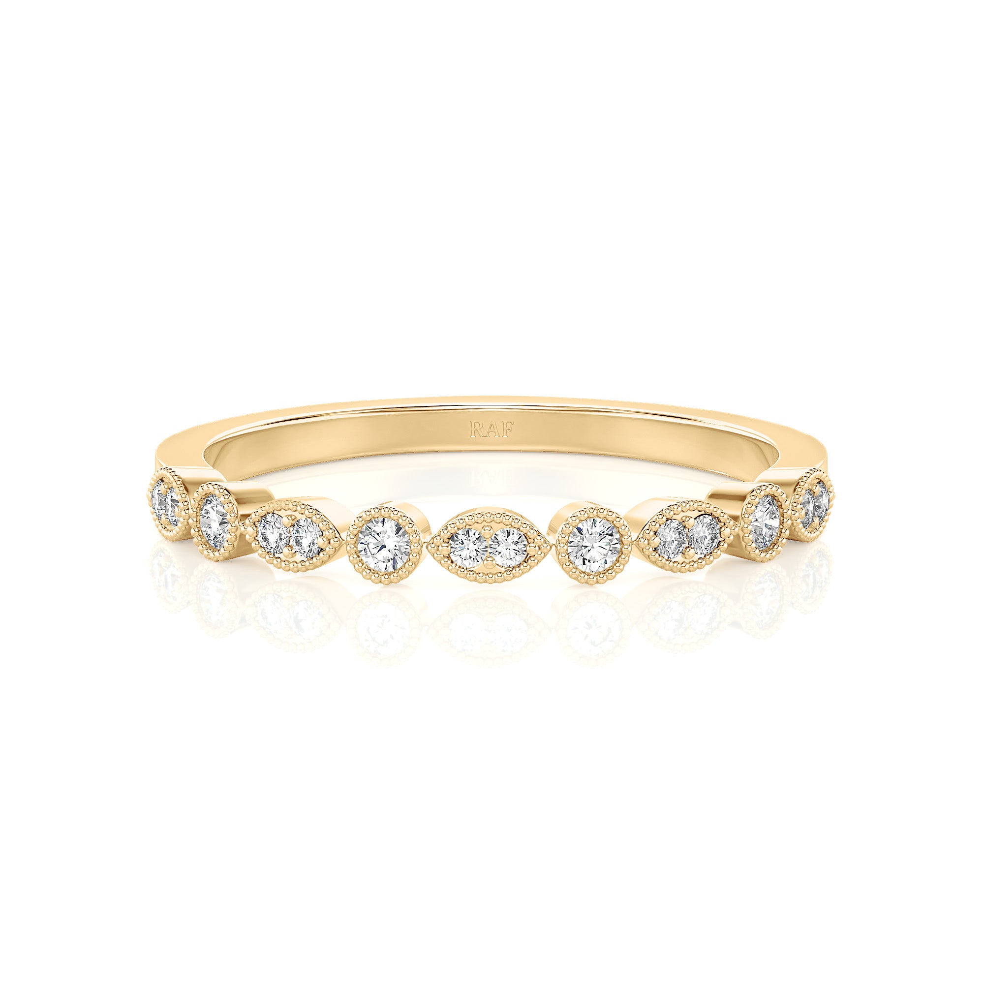 Solid Gold Half Milgrain Diamond Stacking Ring