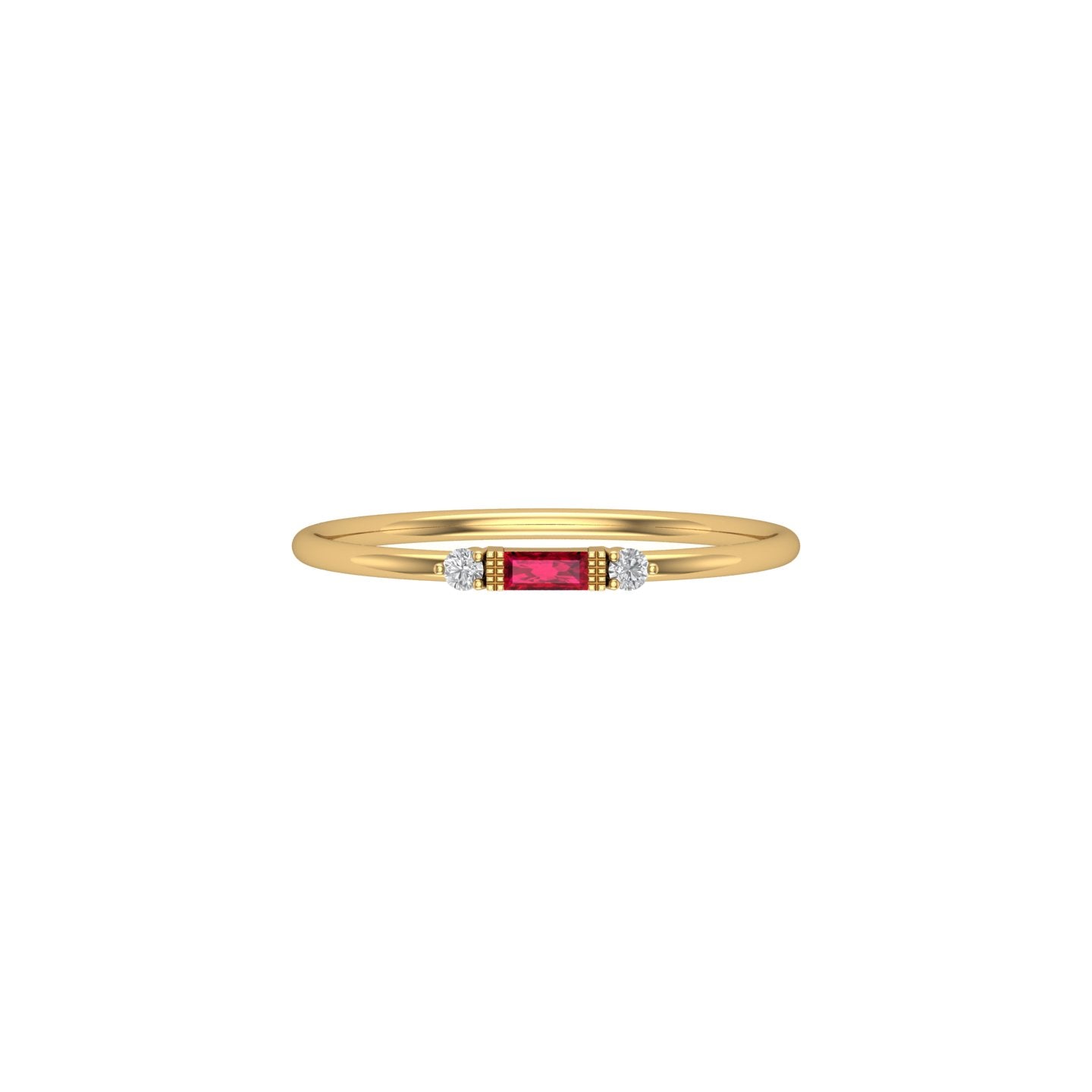 Solid Gold Diamond and Ruby Tiny Baguette Ring