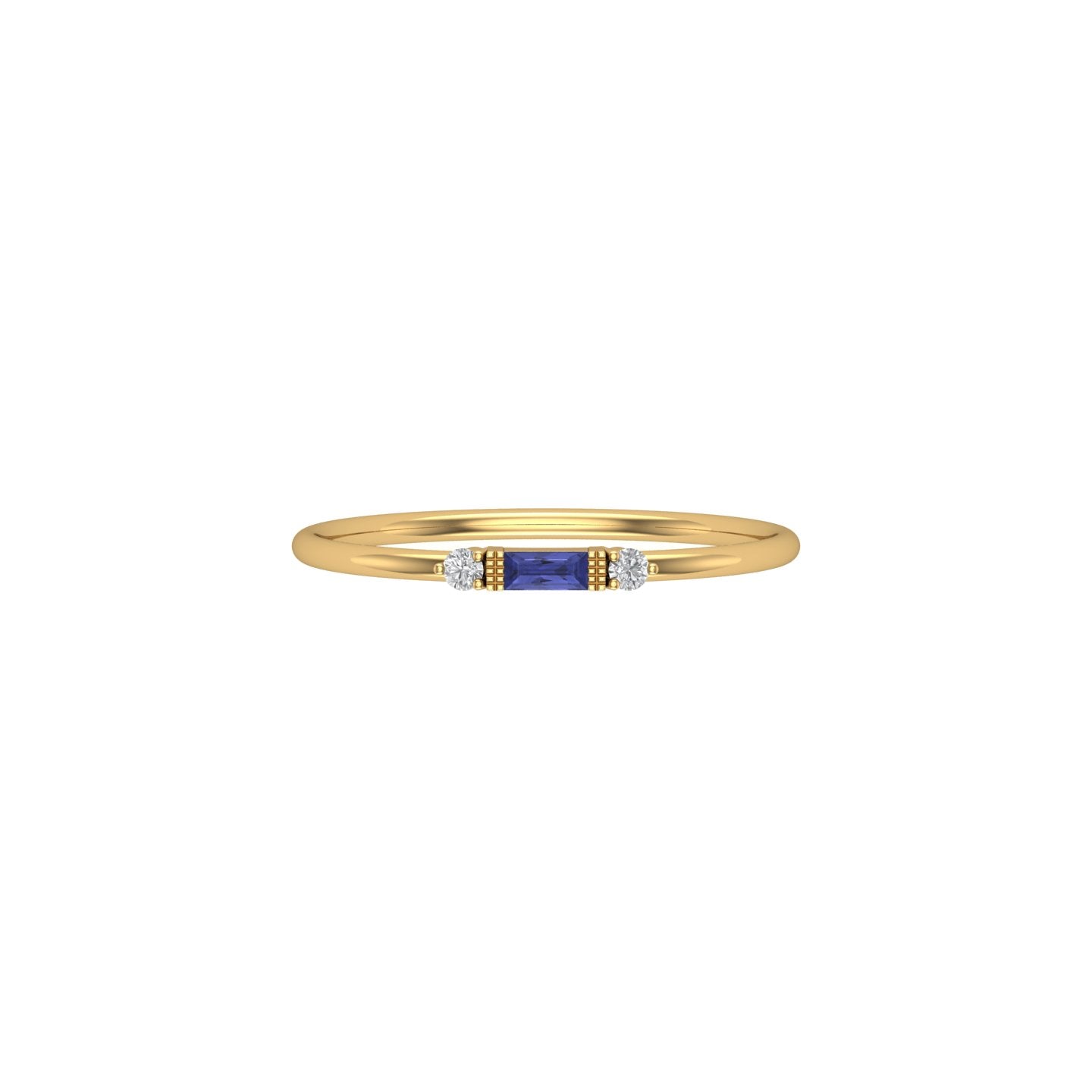 Solid Gold Diamond and Sapphire Tiny Baguette Ring