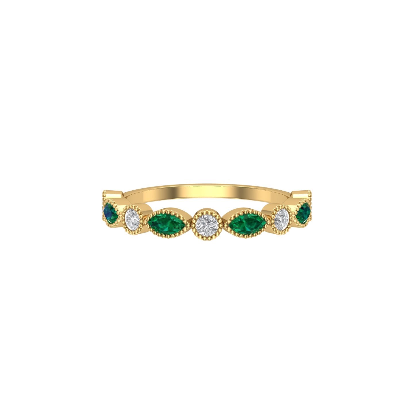 Solid Gold Emerald and Diamond Stackable Marquise Band
