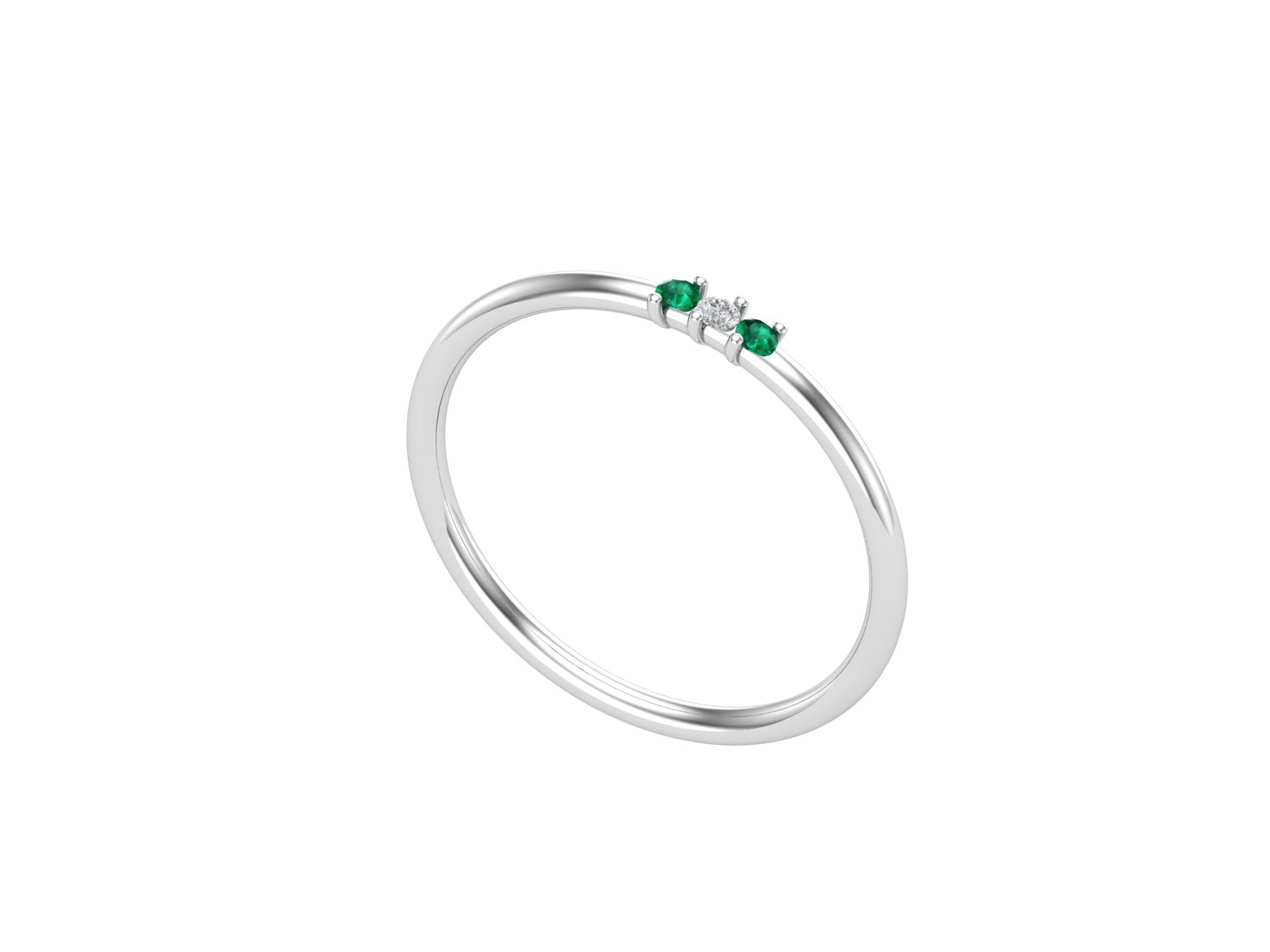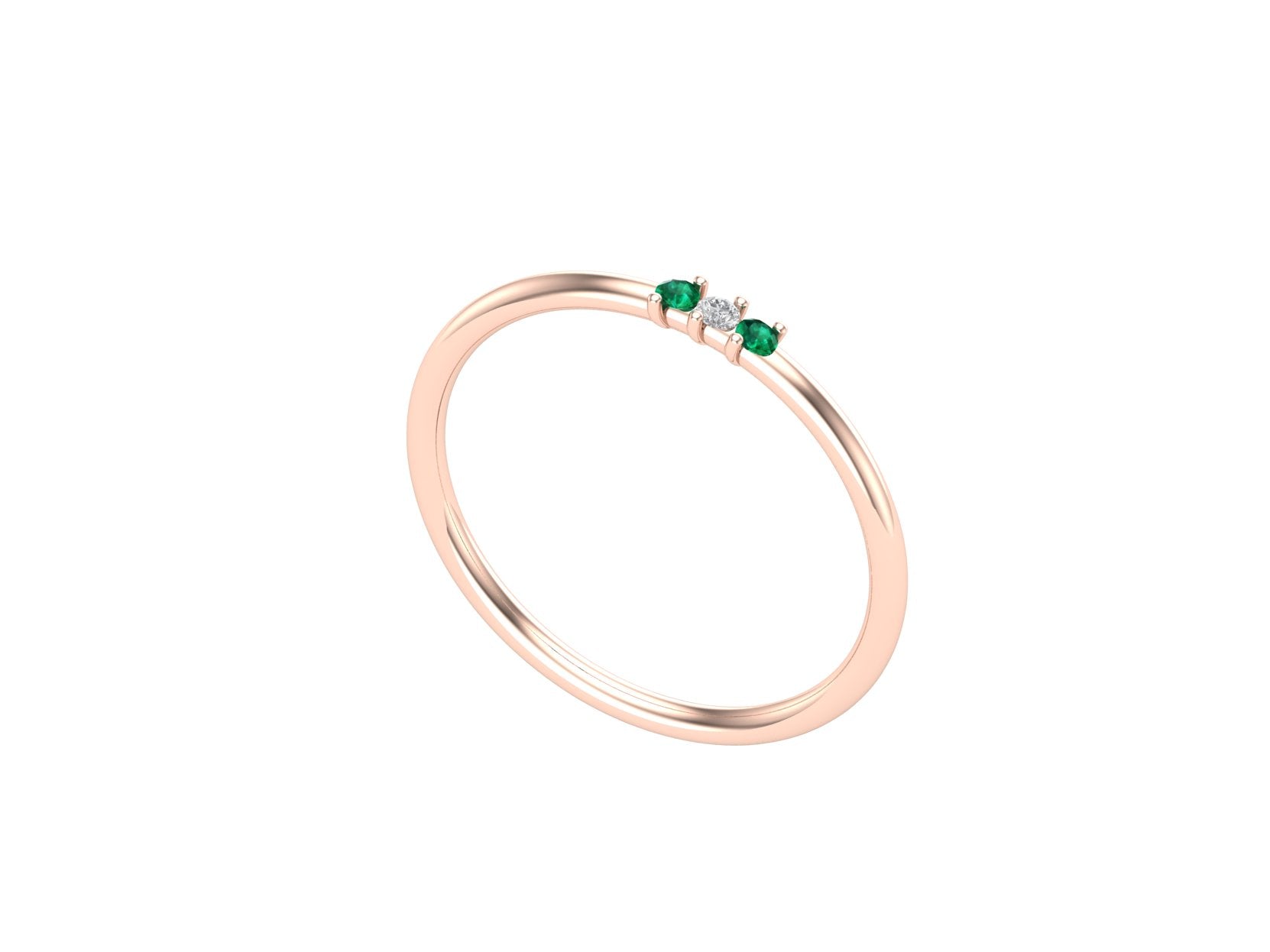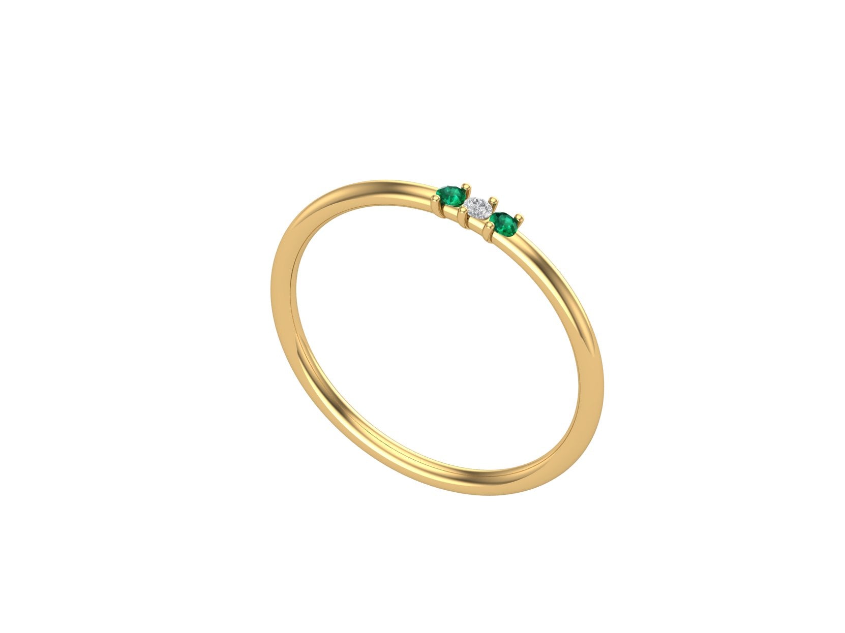 Solid Gold Emerald and Diamond Thin Stacking Ring