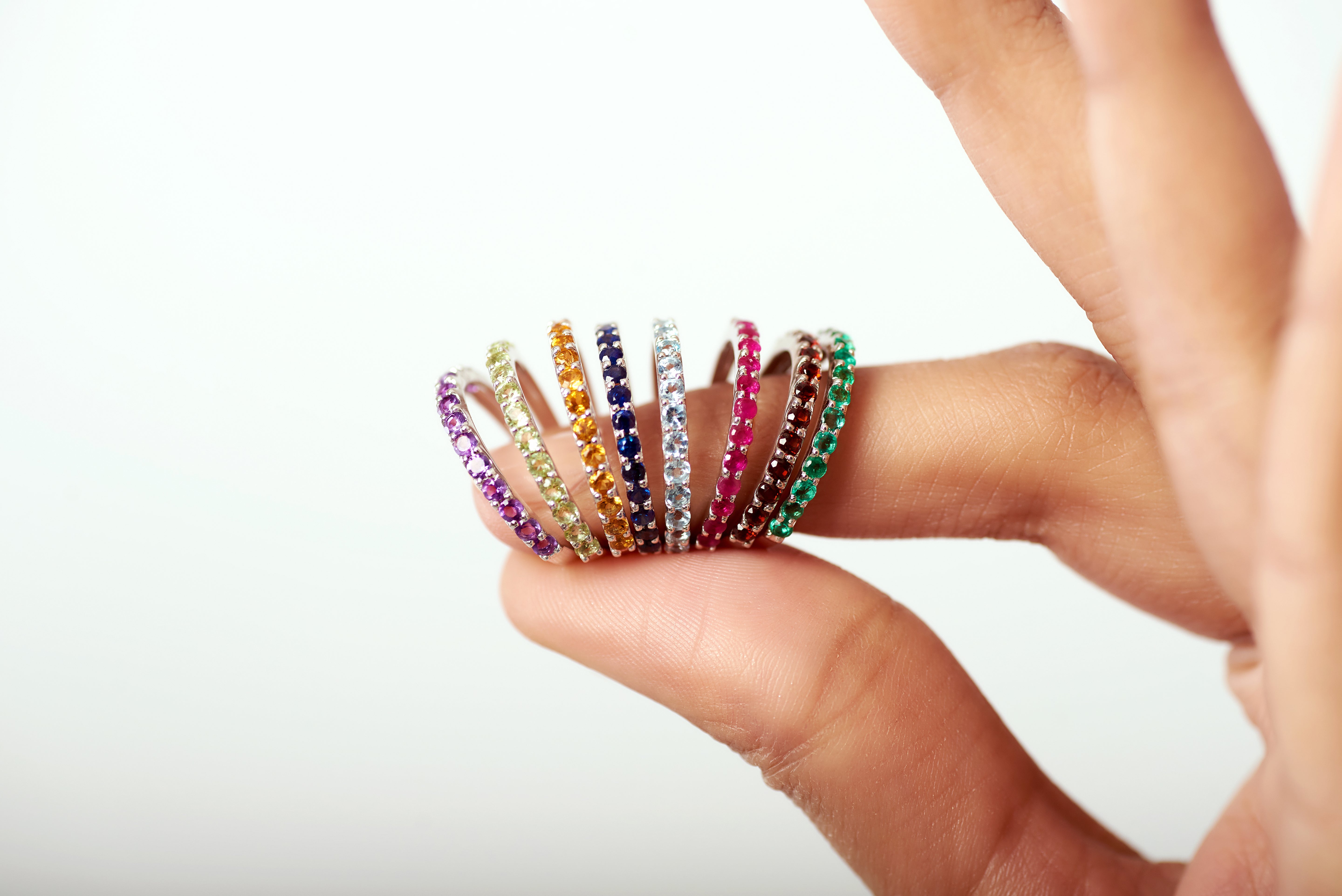Solid Gold Half Milgrain Diamond Stacking Ring