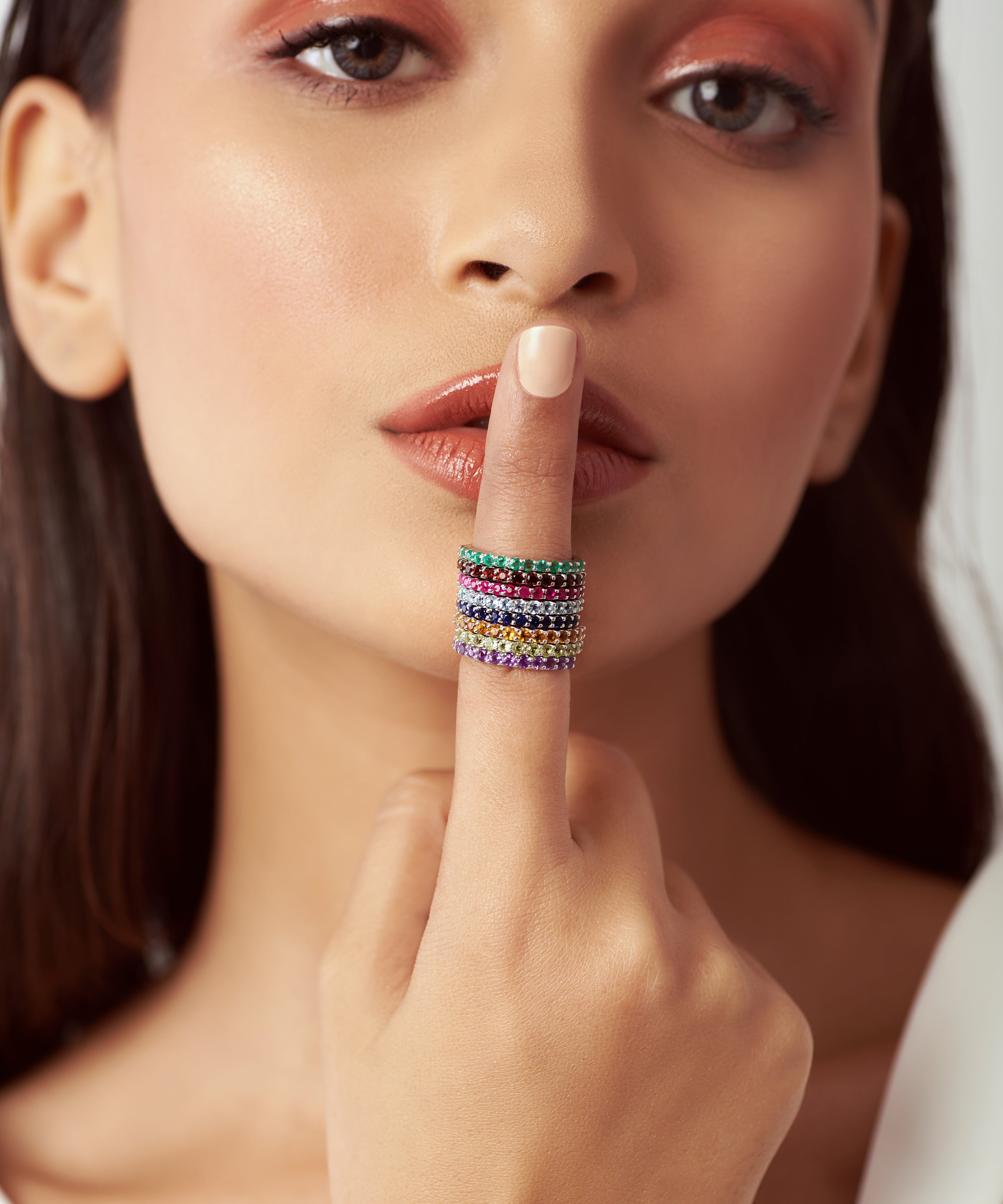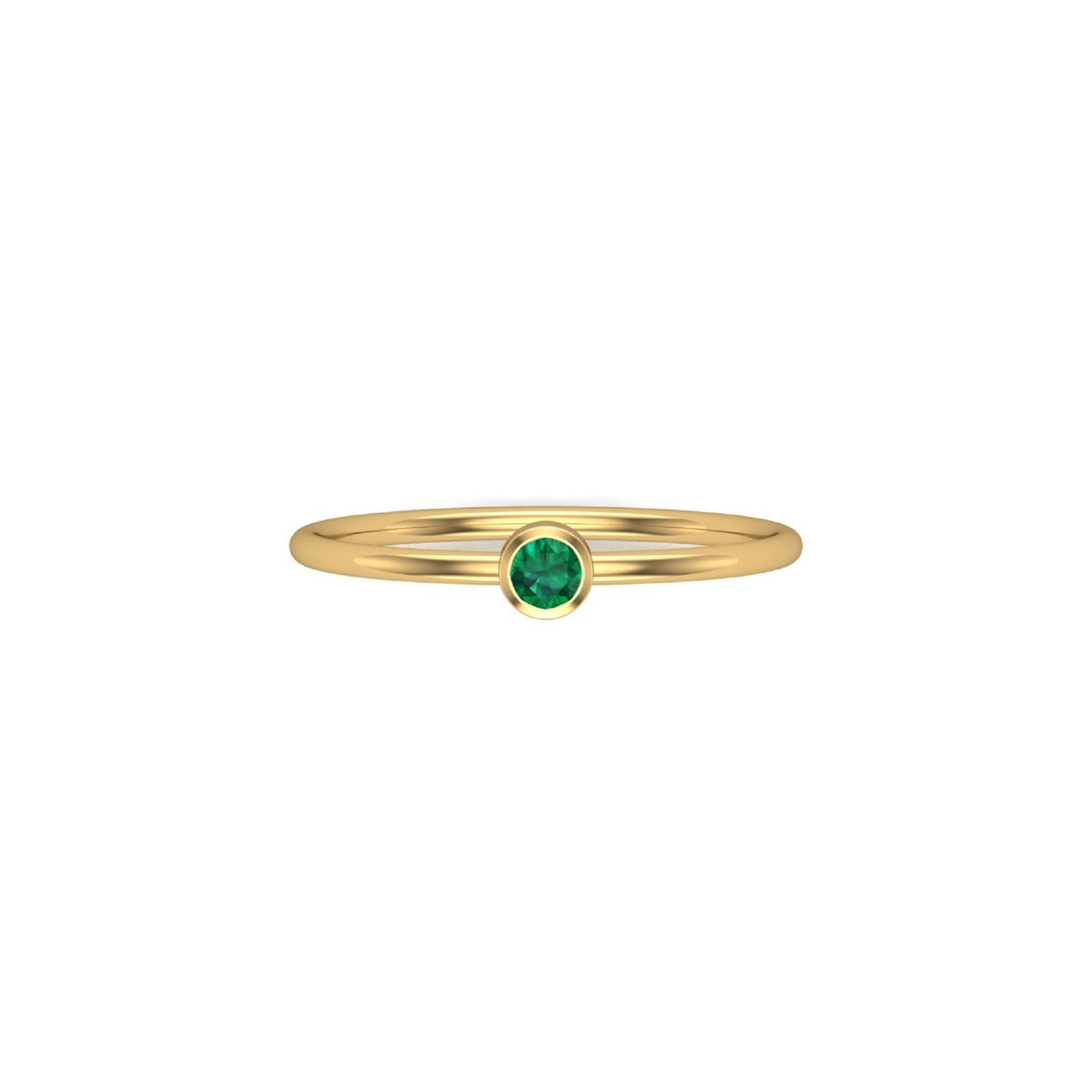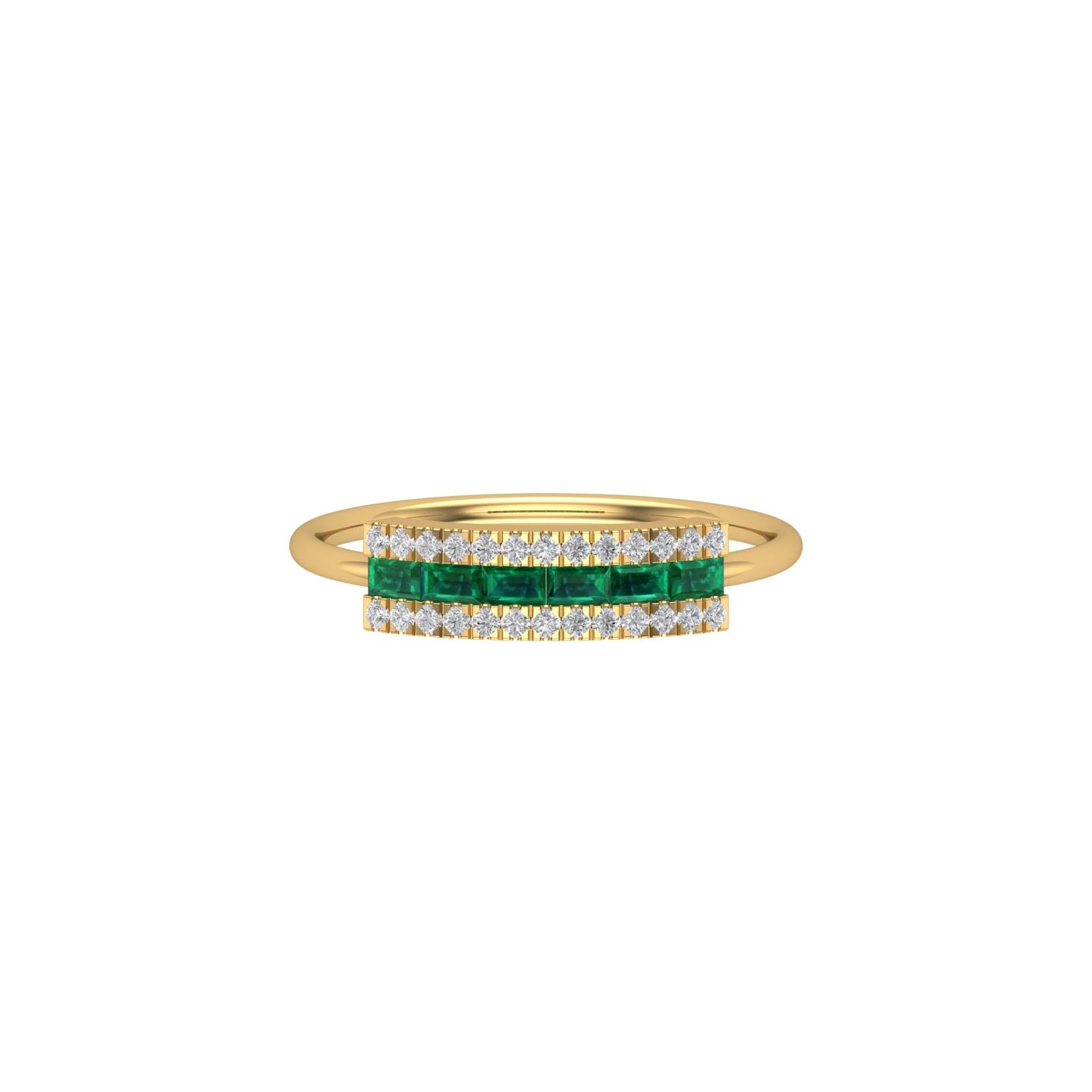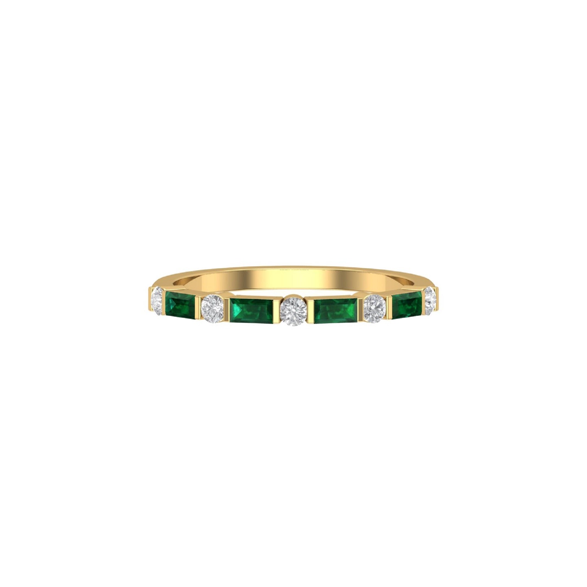 Solid Gold Diamond and Emerald Tiny Baguette Ring