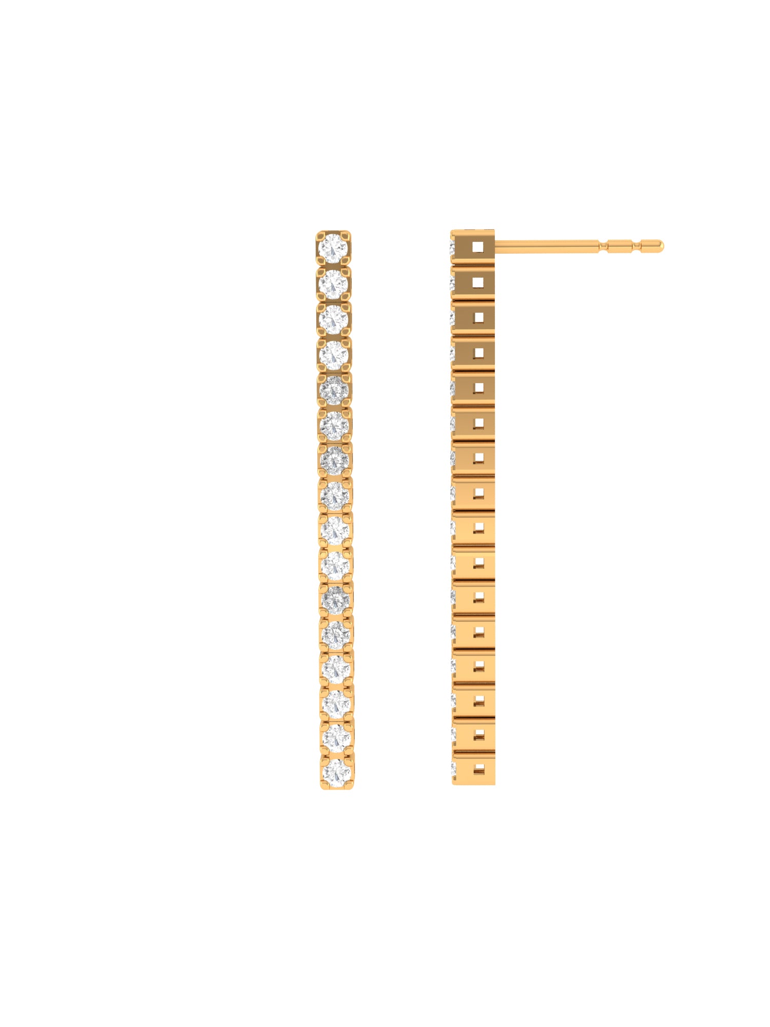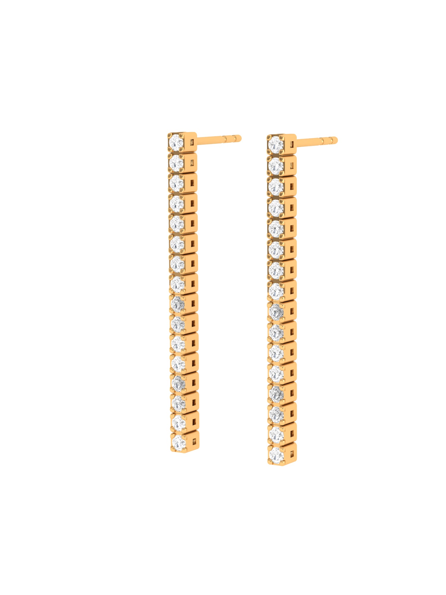 Solid Gold Diamond Long Strip Earrings