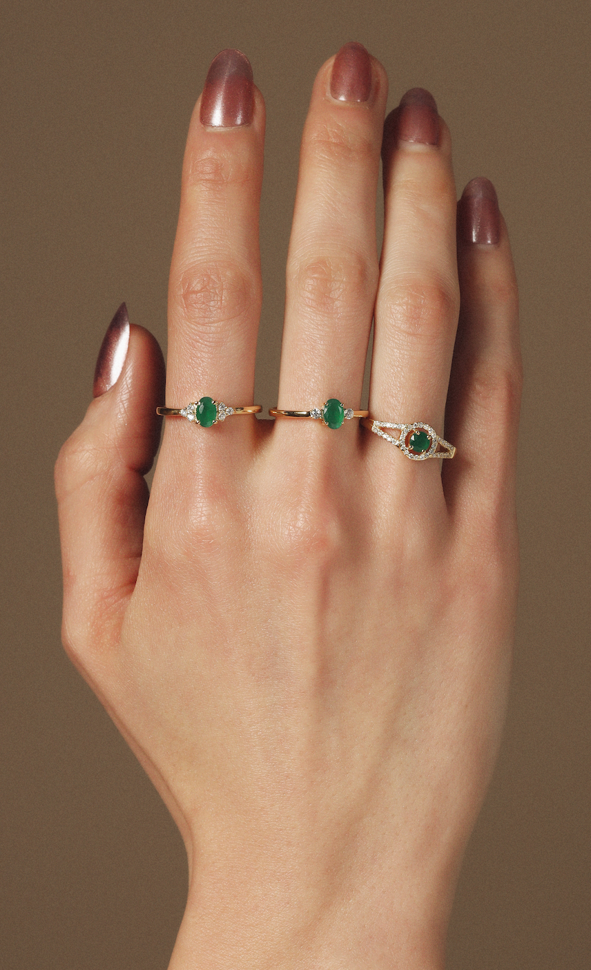 Solid Gold Emerald Solitaire Diamond Ring