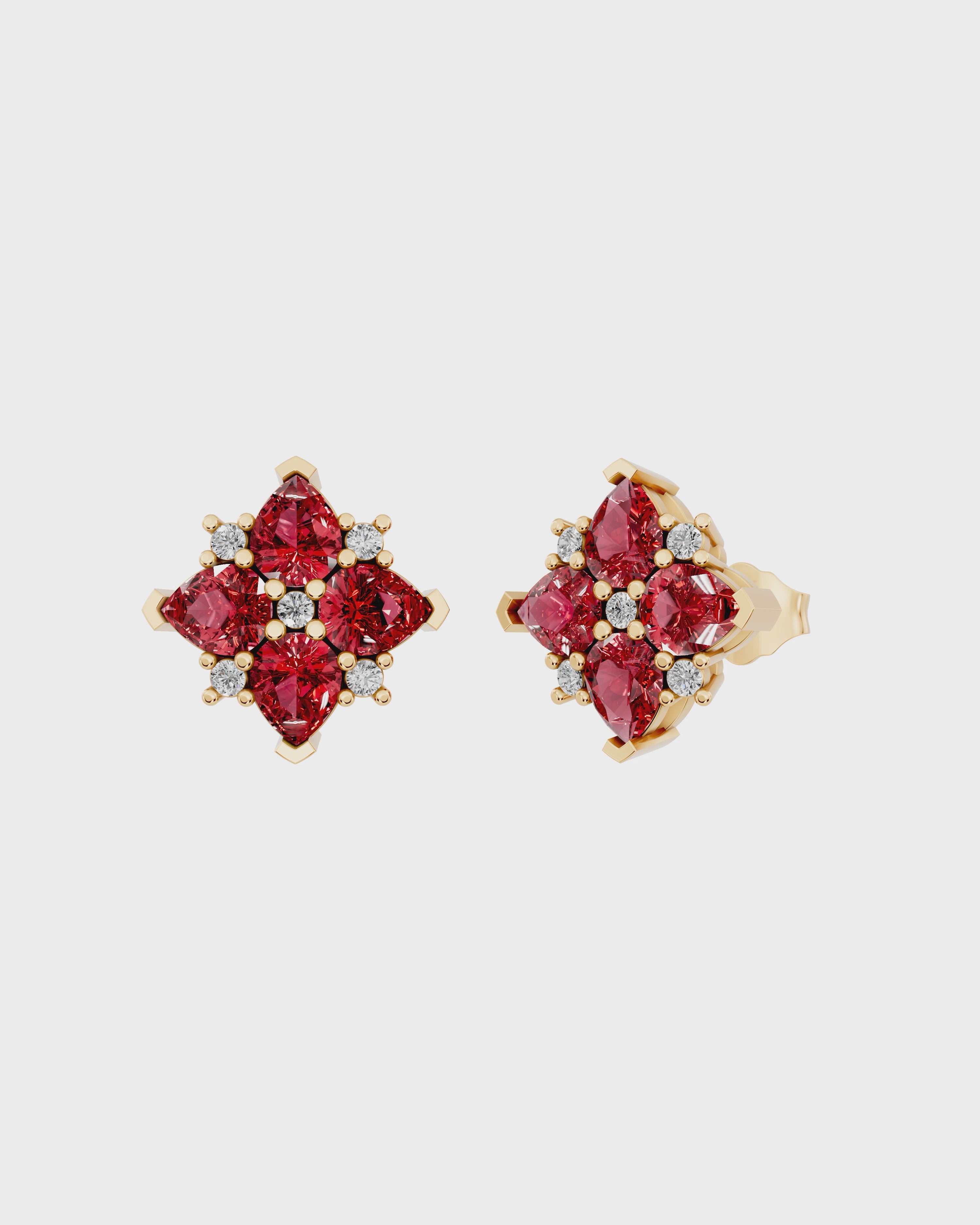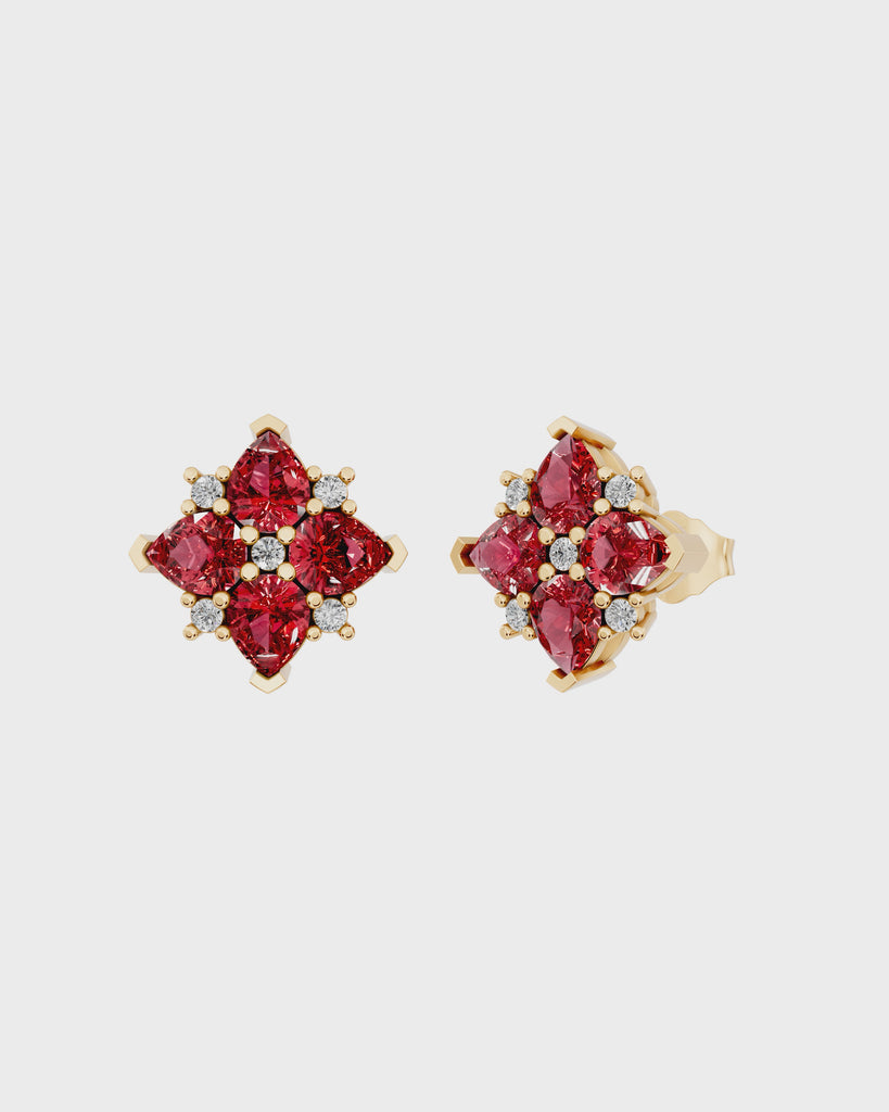 Ruby Flower Cluster Studs