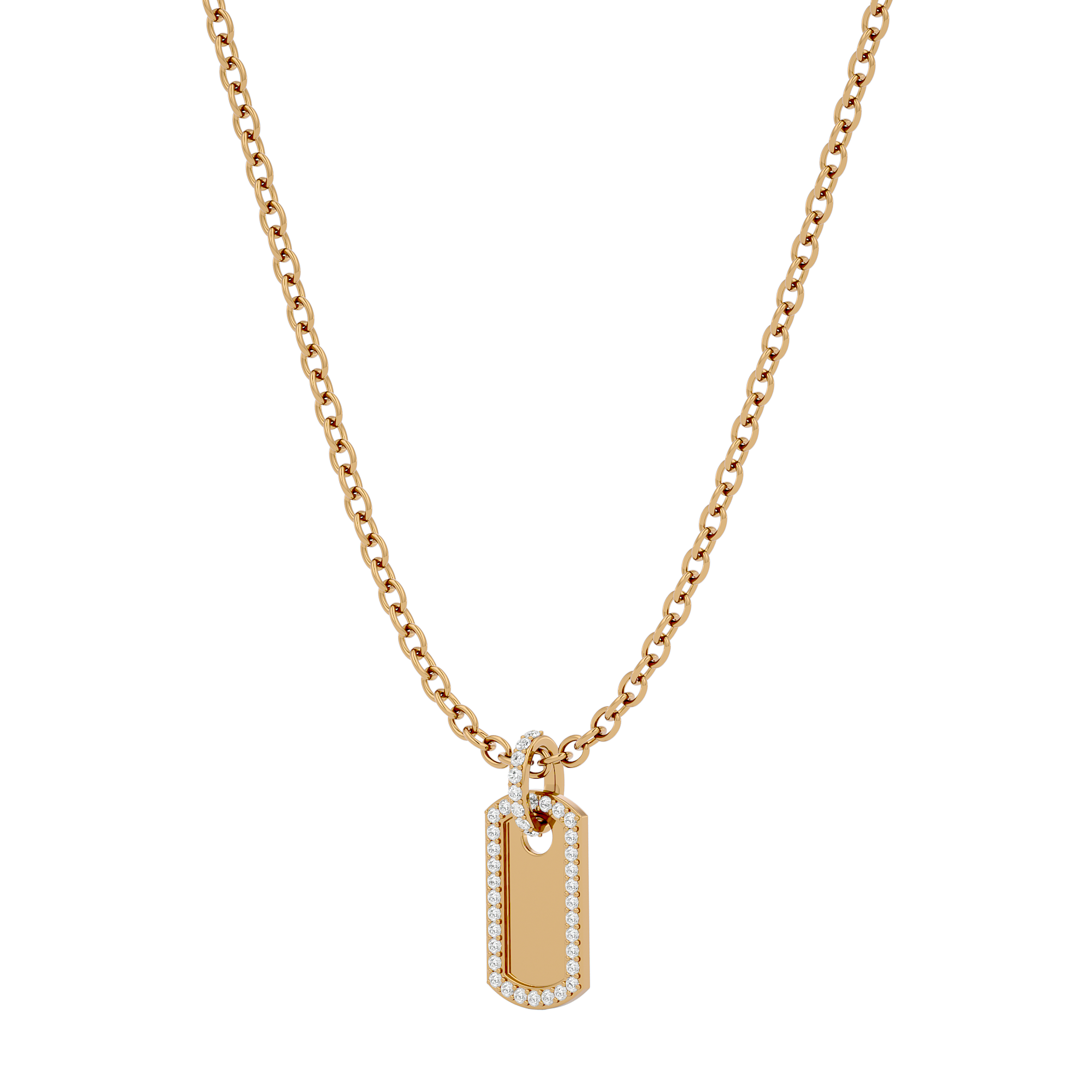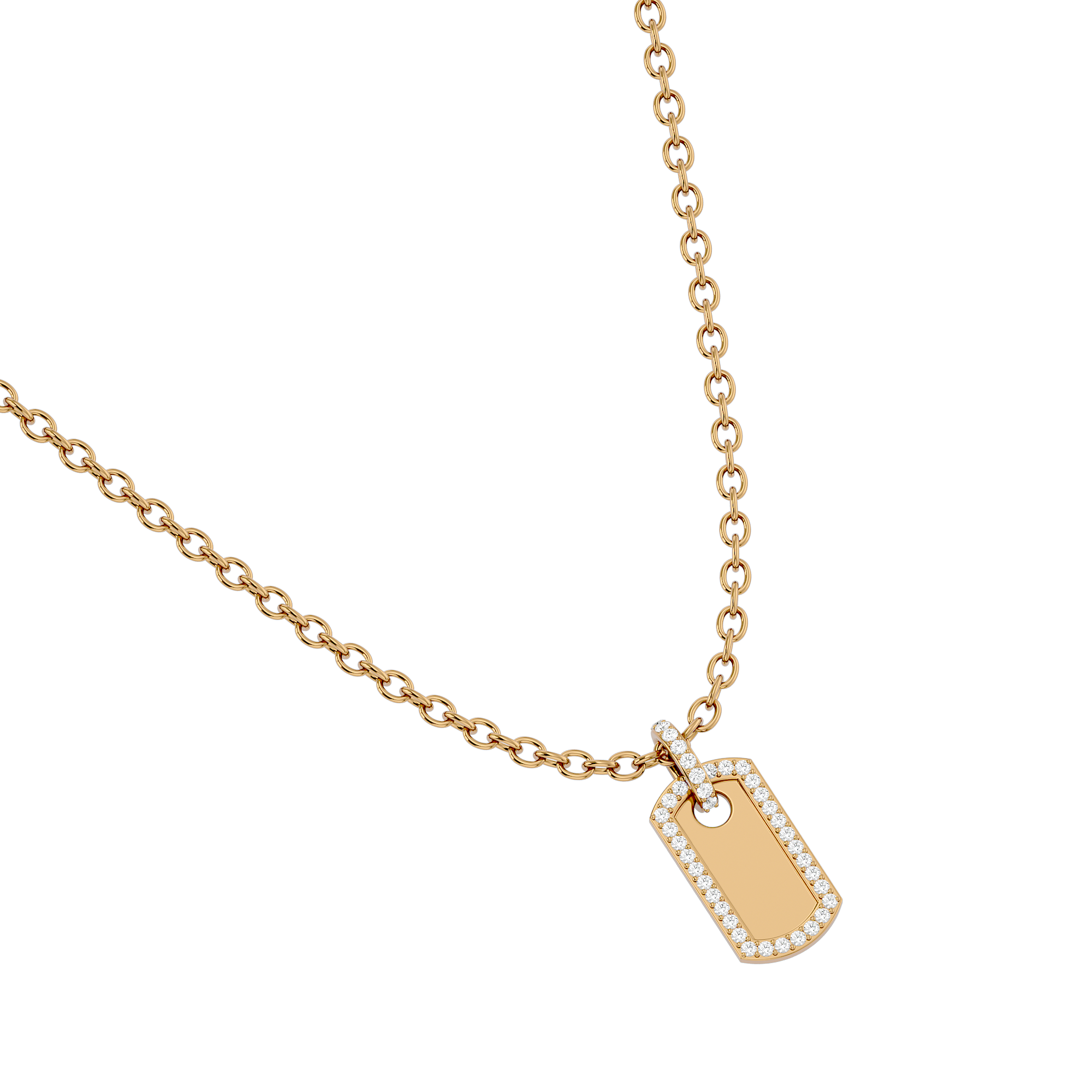 Solid Gold Diamond Dog Tag Pendant-Necklace
